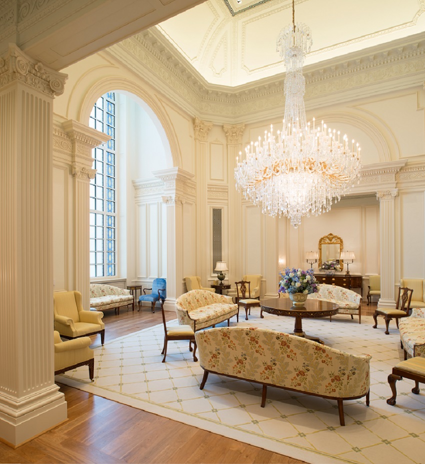 Unlike what might be expected out of such a church-looking structure, the building has no large sanctuary or main hall. Instead, it is divided up into separate floors with individual rooms, some of which are quite small, all of which have some spiritual significance for members of good standing within the LDS church. As expected, these rooms are exceedingly ornate and are filled with murals and Georgian class, and many of the details reflect Philadelphia history and identity. The windows contain a blue and yellow stained glass, reminiscent of the Philadelphia city flag, and various architectural embellishments contain the Mountain Laurel flower, the flower of the state of Pennsylvania.