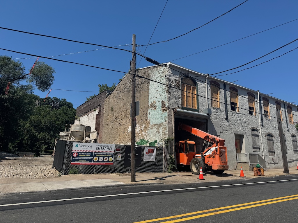 Looking to avoid some traffic on I-76 the other day, we found ourselves in Manayunk, where some ongoing construction at 4050 Main St. caught our eye. The building at this address has been sitting vacant for the last few years, and was most recently home to a furniture store called Dwelling Home Philadelphia. Way back in the day, the building was used for industrial purposes, with the Childs Wagon Works occupying the property in the early part of the 20th century. The building dates back to the mid-1800s and is listed on the local Historic Register.