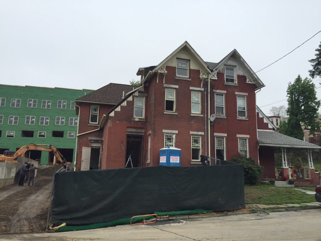 Last year, according to a Newsworks story, developers from Trinity Realty Companies came up with a plan to build ten new homes on these two properties, with five on each side. That's well and good, but it would have meant the demolition of the home at 145 Sumac St., and some members of the Wissahickon Interested Citizens Associaton had a problem with that. A story from Philly Voice indicates that the building has historic qualities, with Eastlake Victorian Styling and having once been owned by the Holt family. The parties went back and forth, and eventually the developers agreed to change their plan and preserve the building. Today we see that five homes have indeed been framed out on Kalos Street, with two more coming soon on Sumac Street. The building at 145 Sumac Street is getting renovated as we speak.