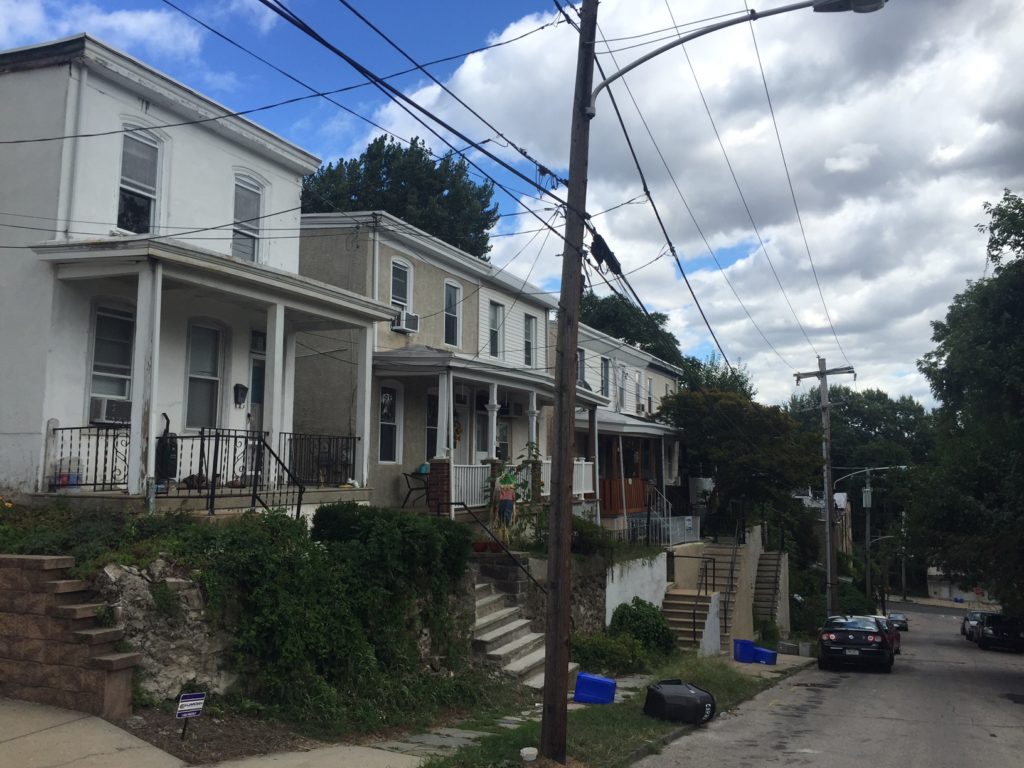 Homes across the street are at the top of steep staircases
