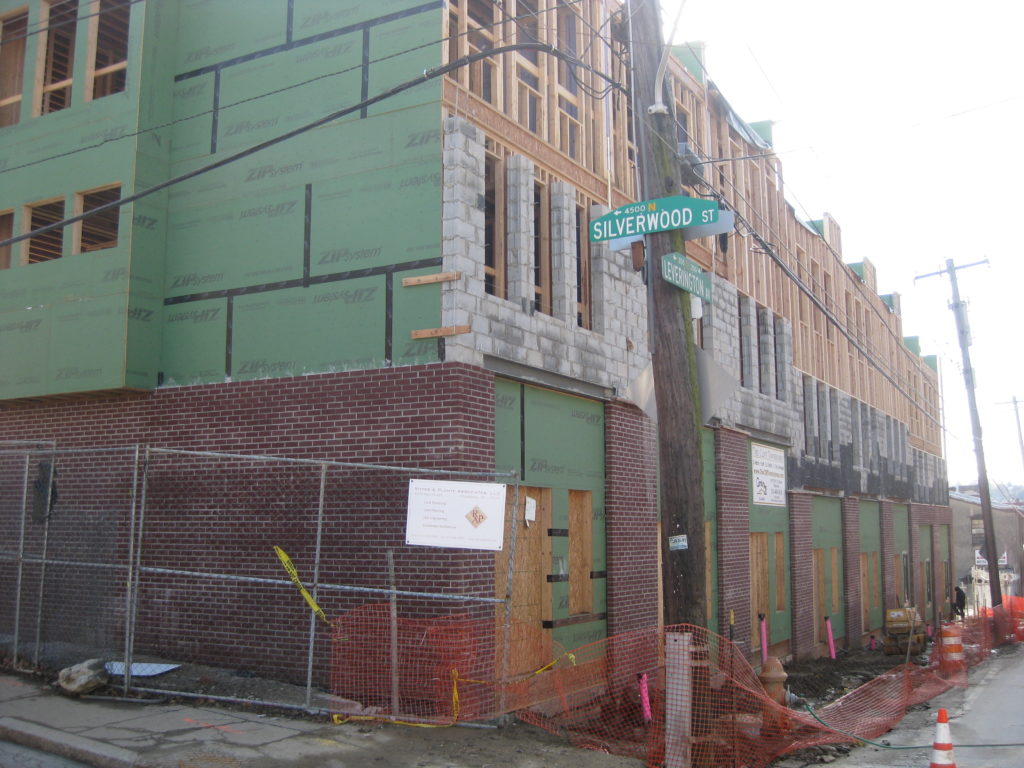 According to Newsworks, this project was approved way back in the fall of 2011 by the community, though based on the visible progress, we’d imagine that the project took a little while to get underway after receiving those approvals. According to the permits, what you see above is only half of the project- another nine homes will eventually be constructed, fronting Silverwood Street.