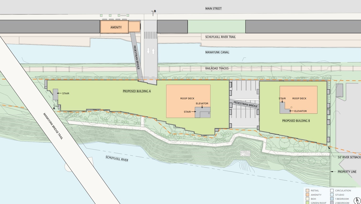 Overall, this project seems like a net win for the area. Manayunk has only increased its appeal as of late, and development most certainly reflects this continued demand. While this site poses tricky issues due to its position along the Schuylkill River, the plan accounts for the potential flooding issues that are ever-present at this spot. The car access will also be widened to accommodate two-way traffic, removing another potential safety/access issue, while a pedestrian pathway will be added between the building and the river.