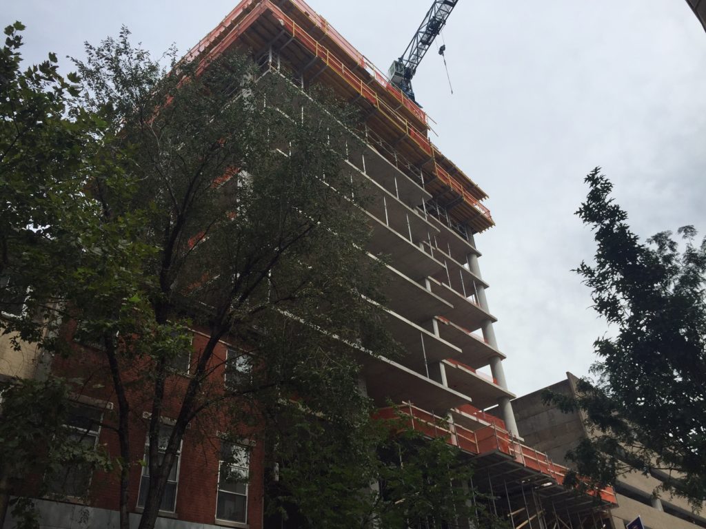 When construction started, the developers expected that the new tower would be ready for at least partial occupancy by the summer of 2017. Given the current state of the construction site, that seems a little aggressive to us, but it's not entirely out of the question.