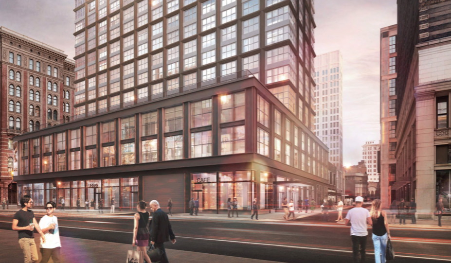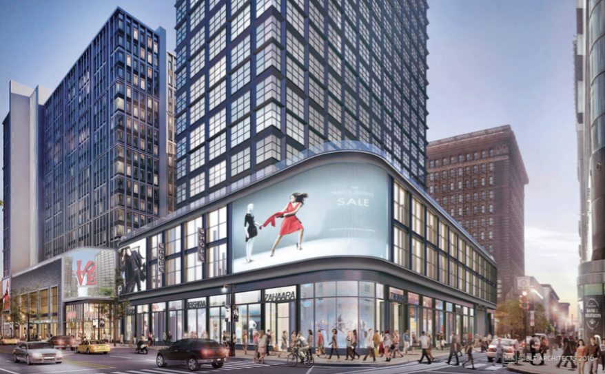 We've mentioned previously that this project will involve additional phases and now it seems that the second phase will happen long before the first is finished. Next month, the developers will present plans for a second residential tower at 12th & Market at Civic Design Review. Like the building at 11th Street, this tower will sit on a retail platform, but it will be taller, rising 21 stories. A skinnier structure, it will have fewer units than its neighbor, with 240 apartments planned.