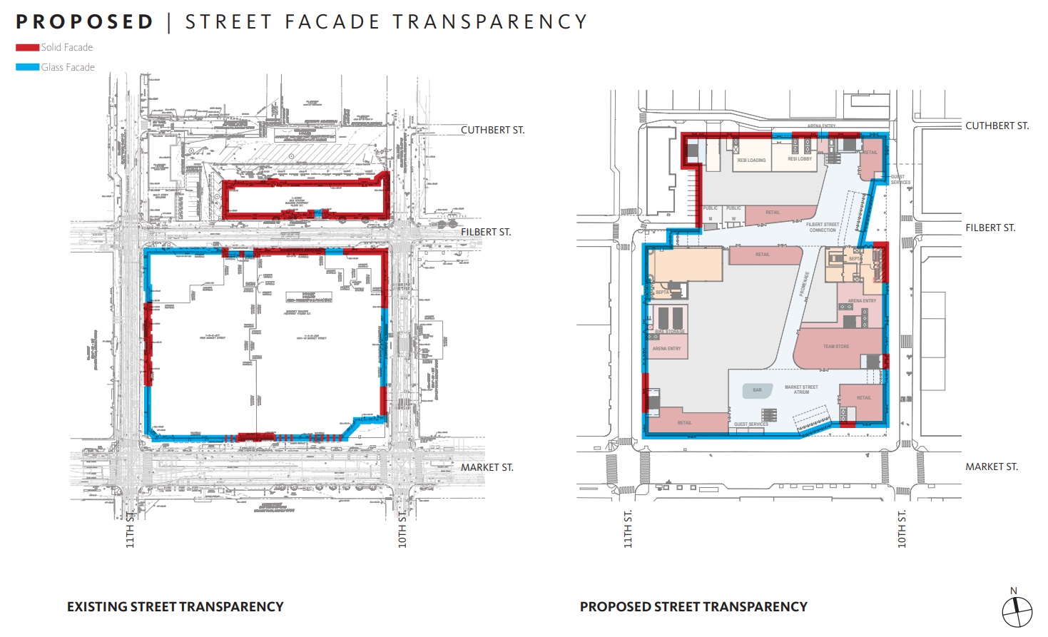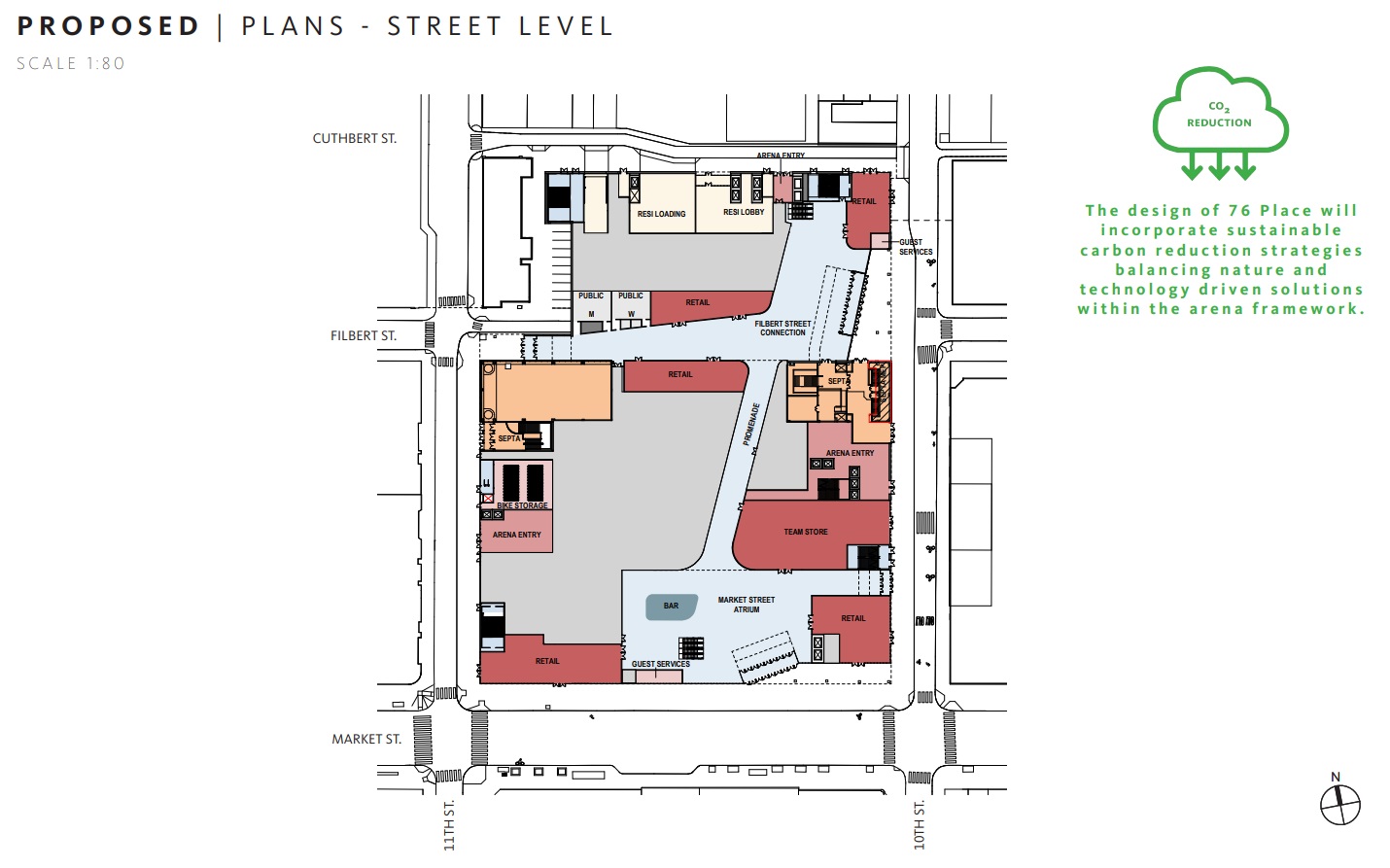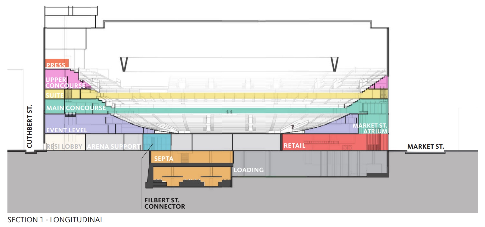 It’s no secret at this point: the Philadelphia 76ers have their hearts set on a new arena – 76 Place – in the heart of the city at 11th & Market. The western third of the Fashion District has been eyed as the new location for some time now, with more recent updates including a residential component and a possible ordinance paving the way for our hometown squad’s new home, with a design from arena experts Gensler. Throughout this process, there have been public meetings, both contentious and calm, with ownership and neighbors exchanging dialogue around their visions for the future. But after a relatively quiet period lasting all of two-and-a-half months, we have some additional intrigue to throw into the mix.