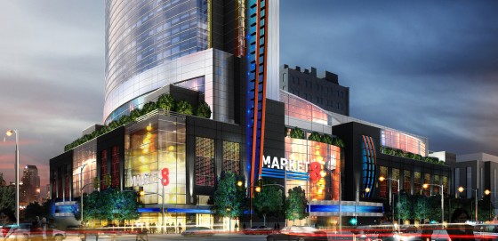 Today, members of Mayor Nutter’s administration gave their opinions to the PA Gaming Control Board on the six proposals currently under consideration for Philadelphia’s second casino license. If you’d like a rundown of all of the groups vying for this lucrative license, check out this excellent summary from today’s Daily News. But for now, we have some new information on the MARKET8 proposal, along with the sparkly new rendering that showed up in our inbox yesterday.
