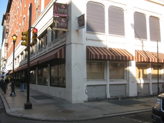 While it doesn’t make us feel warm and fuzzy inside that two quality establishments on this block have closed up shop recently, we’re hoping that they’re replaced with a couple of winners. The former Tweed location has yet to even take down the curtains or their window decal, but we have noticed that work is FINALLY being done on the completely demolished interior (hopefully in preparation for a new eatery?). We also spotted someone working in the former T-Bar space, but couldn’t really get such a good look. You know, all that paper in the windows.