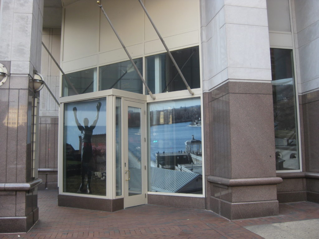 Now, we like a good photo of the Rocky statue as much as anyone, but is anyone else a little surprised that this space has sat vacant for so long? And isn’t it likewise strange that a sports bar couldn’t hold things down in a space connected to a Convention Center hotel? Any thoughts on a business that could succeed here?