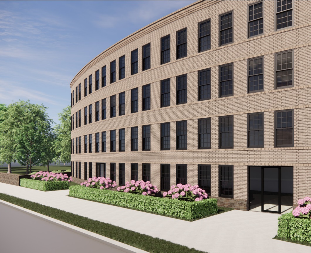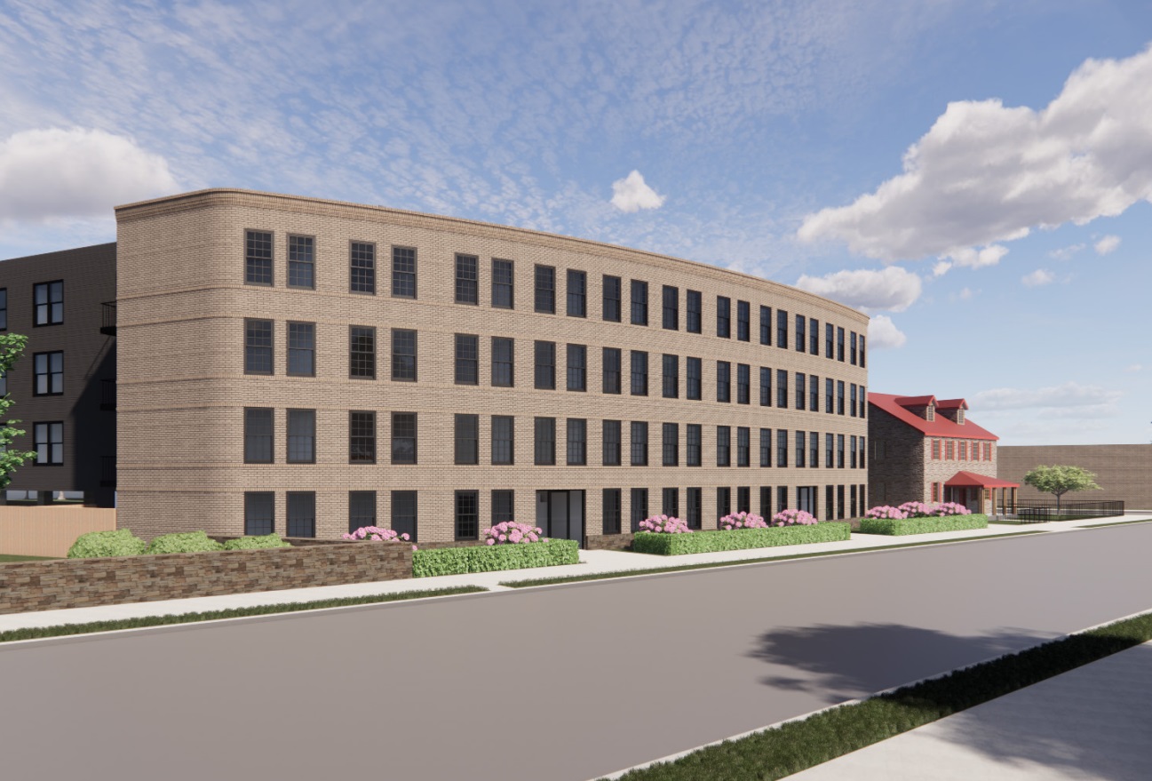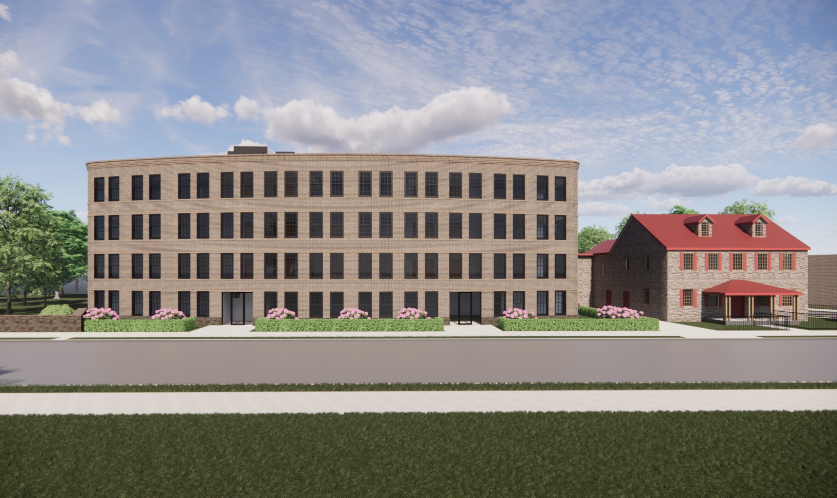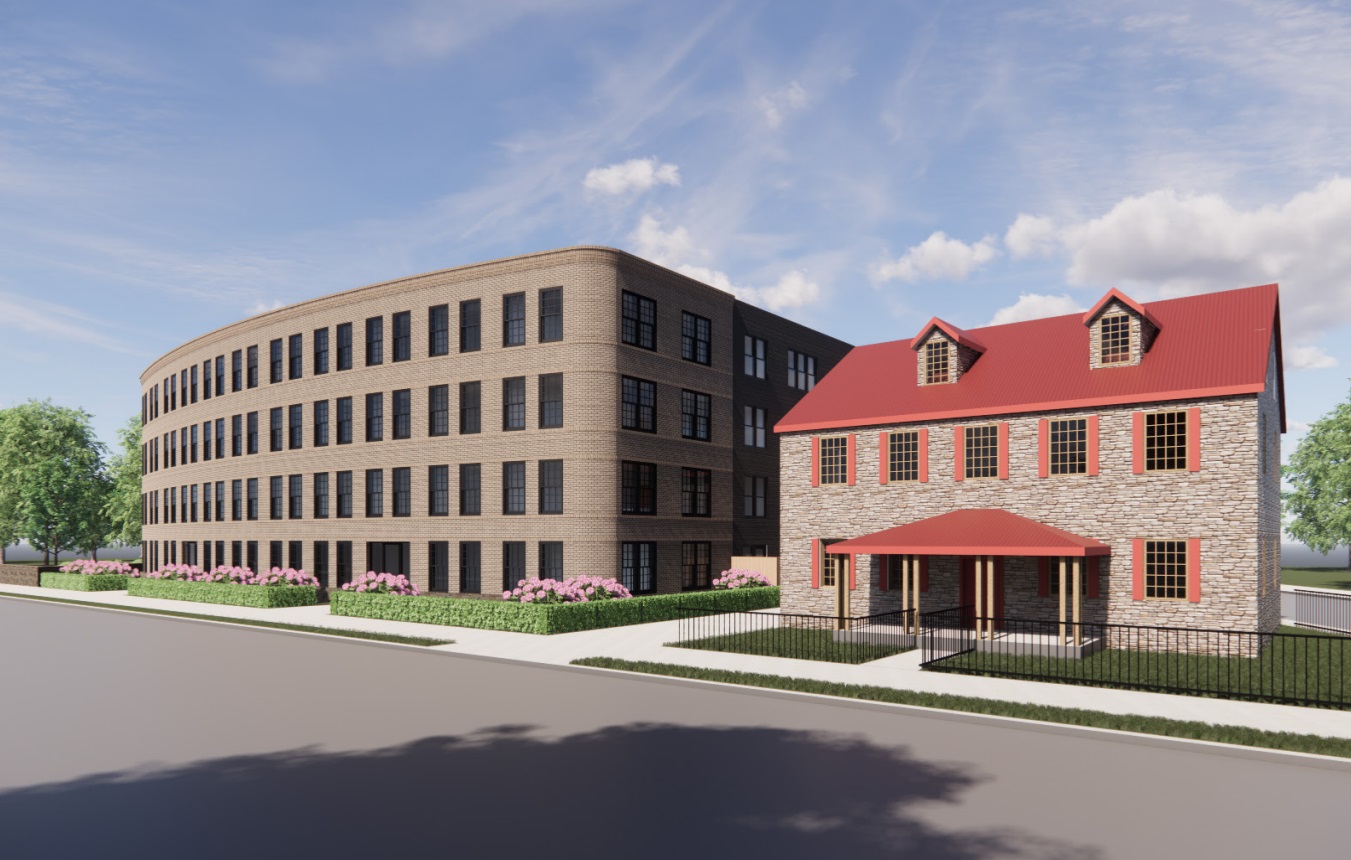 The plans here were big, calling for 72 units to go up in a mixed-use building, which would include car parking for 24 accessed from Gorgas Ln., with a commercial space along Germantown. A rounded, green building was proposed, butting up within five feet of the historic structure. As this was a first proposal to the Architectural Committee of the Historical Commission, we speculated we might see a change or two to this bold design from developers TierView and architects Canno. And wouldn’t you know it, we did in fact predict the future.