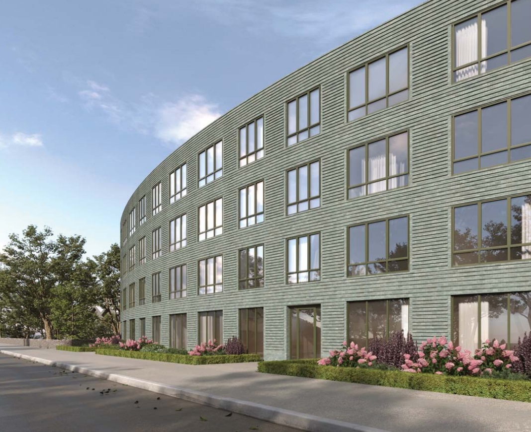 Secondly, from a look perspective: bye-bye green, hello beige! We often believe in the “bold is beautiful” approach to buildings, appreciating a design that takes some chances. However, the turn to tones that match the house make the entire project blend in more gracefully. The windows also change slightly, feeling less industrial and more suited for a domestic scale. A cornice is also added, offering a nod to the historic architecture that surrounds the area and once again fitting in way better than before. Let’s scope out some before-and-afters, shall we?