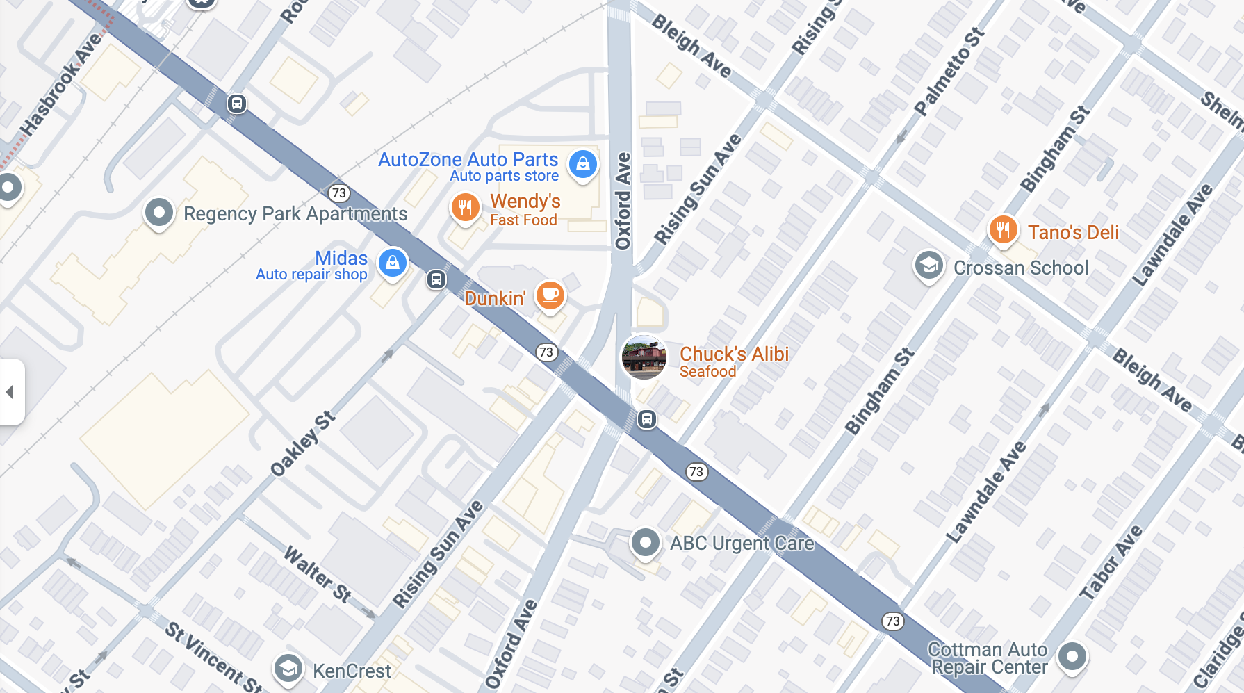 Today we sojourn to the Burholme neighborhood in Northeast Philadelphia, mere steps from Cheltenham and lower wage taxes. Just a couple blocks away from the city’s edge sits the intersection of Cottman, Rising Sun, and Oxford Avenues, more commonly known to locals as “Five Points.” Should you find yourself driving around these parts, please be careful at this intersection – it’s pretty confusing the first time and barely better the second time.