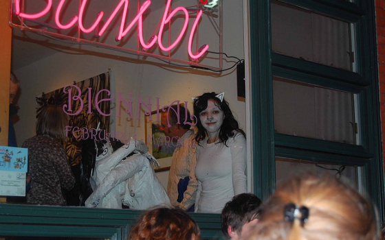 Bambi Gallery is moving on from its home of two years at 1001-13 N.Second Street in Bart Blatstein’s Piazza because, “it was not the right fit,” Karch points out. When the Piazza was first unveiled it had a great energy, but as time wore on, the giddy and creative atmosphere of shops and tenants that was originally fostered by the Piazza’s leasing office fell by the wayside according to Karch. She felt that Bambi Gallery and other tenants were becoming “disillusioned” by the rising rents and the lack of foot traffic that waned with the decrease in the number of events hosted by Tower. “It was hard to be open 40 hours a week with no one stopping by,” says Karch. The final straw for Bambi’s owner came in January when a faulty sprinkler system errantly went off twice in her gallery destroying artwork and merchandise (including the Dominic Episcopo‘s “Meat America” event we missed). “That really sealed the deal for me not to resign the lease.”