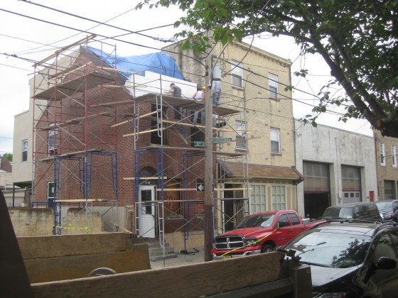 Developers Creekview Investments LLC purchased this building last September for $150K and are in the process of rehabbing it. A part of this renovation involves cleaning up a previously existing rear addition and building additional living space on the third floor.