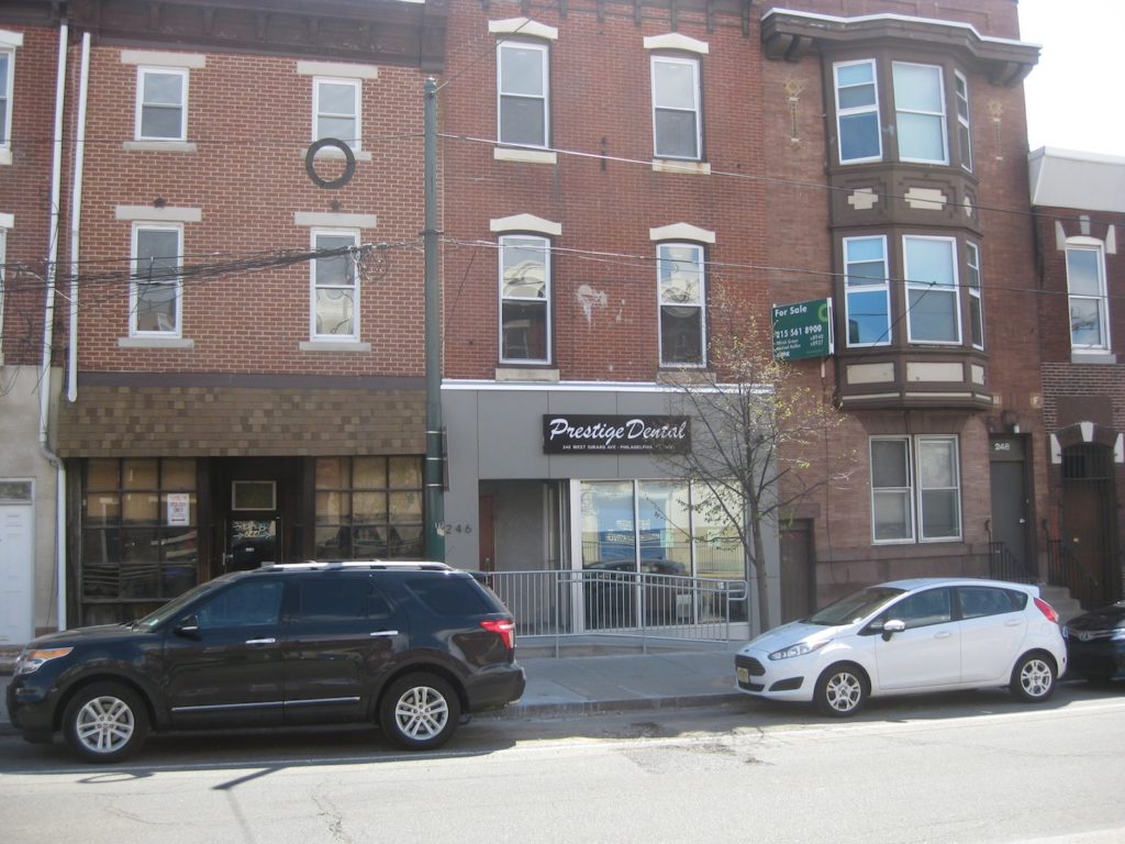 Until recently, Saint Francis Urban Center occupied a space at 246 W. Girard Ave., which had a brownstone storefront that wasn't terribly inviting. Triple Eight Investments LLC bought the building last year and proceeded to do some significant work inside and outside of the building. Now, it's been converted into a dentist's office, with offices on the upper floors. We were kind of expecting apartments above but jobs are good too. You can see, the commercial space is now considerably more appealing to passersby, and it's also handicap accessible.