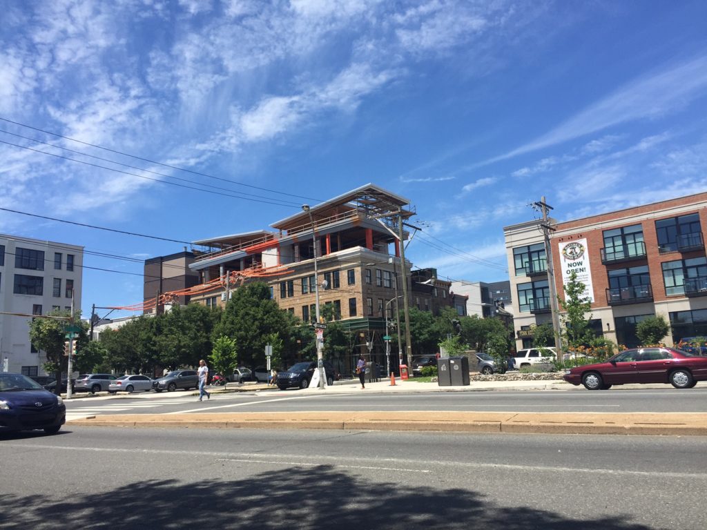 We initially thought that the addition was some kind of roof deck which would either serve the ground-floor business or the residents of the apartments on the building's upper floors. The fact that we couldn't easily find permit information made us more confident about this idea. Over the weekend though, we actually walked up to the building and spied a posted permit indicating that the two new floors will include two new apartment units.