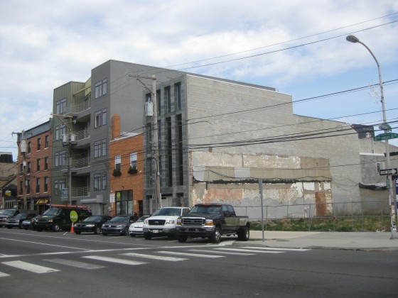 The scale certainly is on the mark. To the north is a five-story building that’s a work in progress, alongside an apparently stalled four-story building. The commercial space is also a good call. Considering the large number of ground floor commercial businesses on 2nd St., along with the number of new businesses that have opened in the area in the past year or so, a new construction commercial space on the corner should have little trouble finding a solid tenant.