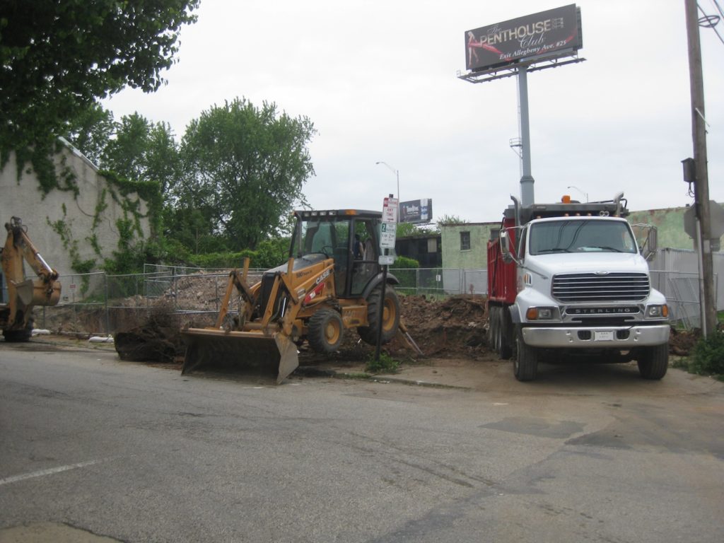Over the last year or more, we've documented a variety of projects that have popped up on Front Street in Northern Liberties. Most recently, we updated you on eight homes under construction on the 900 block, with plans for some more next door. These are rising across the street from eleven new homes that are basically next to I-95. And just to the south, the Penn Treaty Village Pennthouses have been under construction for the better part of two years, with the second building now hitting the home stretch. At the corner of Front & Fairmount, the development train is continuing to rumble.