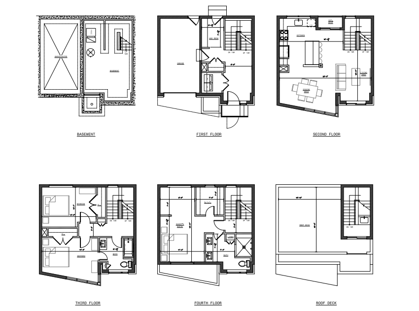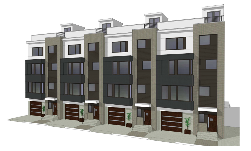 As you can see, these homes will have a somewhat unusual floor plan. Wider than the average new construction, the homes will be almost square-shaped, with a wonderful open living space on the 2nd floor. Also, we should mention that we dig the fourth-floor balcony over the bay window. And the architecture does have a nice contemporary look to it.