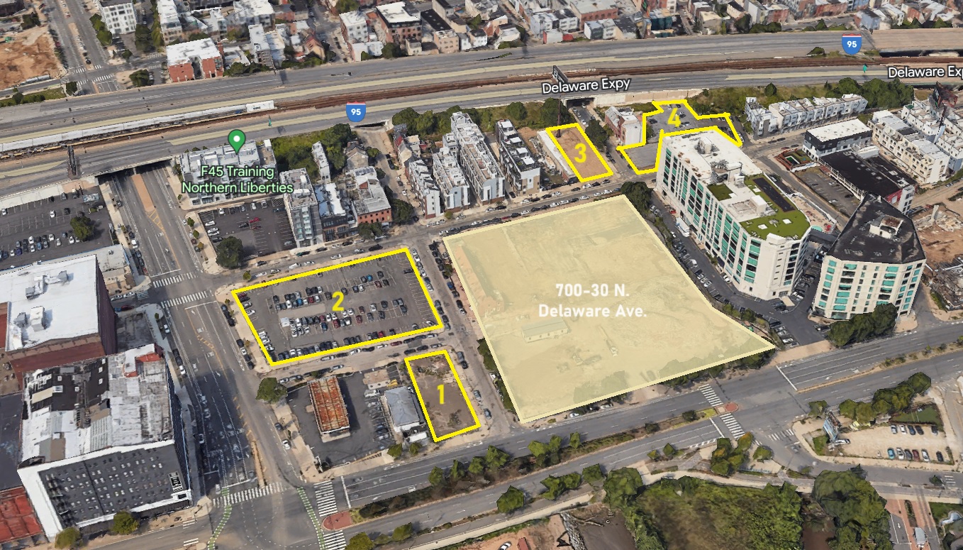 Let’s talk each of the lots. Property one sits at 626 N. Delaware Ave. and is actually one we stopped to visit earlier this year, when a zoning permit indicated things may potentially be moving forward. The plans here are unlike any we’ve seen: 96 units to sit over an auto dealership. Property two is another we’ve checked out in the past, with the last proposal calling for a Wawa gas station and parking garage, which thankfully never happened. Properties three and four are currently empty lots on either side of Brown St. and while there are no current plans, both are zoned for multi-family, so we’d imagine they are on radar of developers.