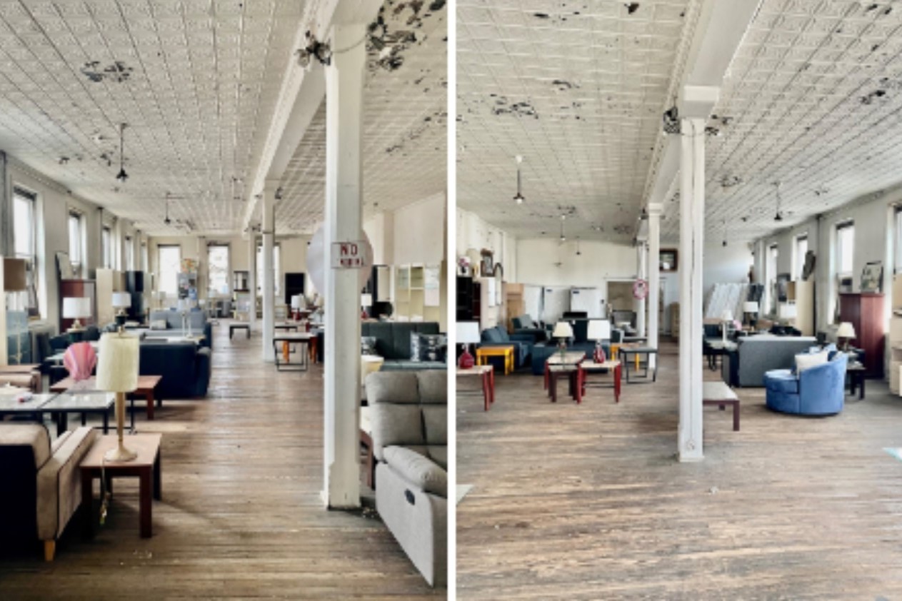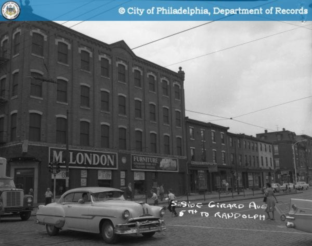 The red-brick building on the SW corner started life over a century ago as a bank before becoming home to M London Furniture in 1938 after a move from 52nd St. in West Philly. But after an 85+ year run, the long-time owners are deciding to move on from this four-story, 12K sqft building, putting it on the market for $1.2 million. While the building is missing its pointed roofline and cornice from its hey-day, tons of the window details and brick still give the oodles of charm to this day.