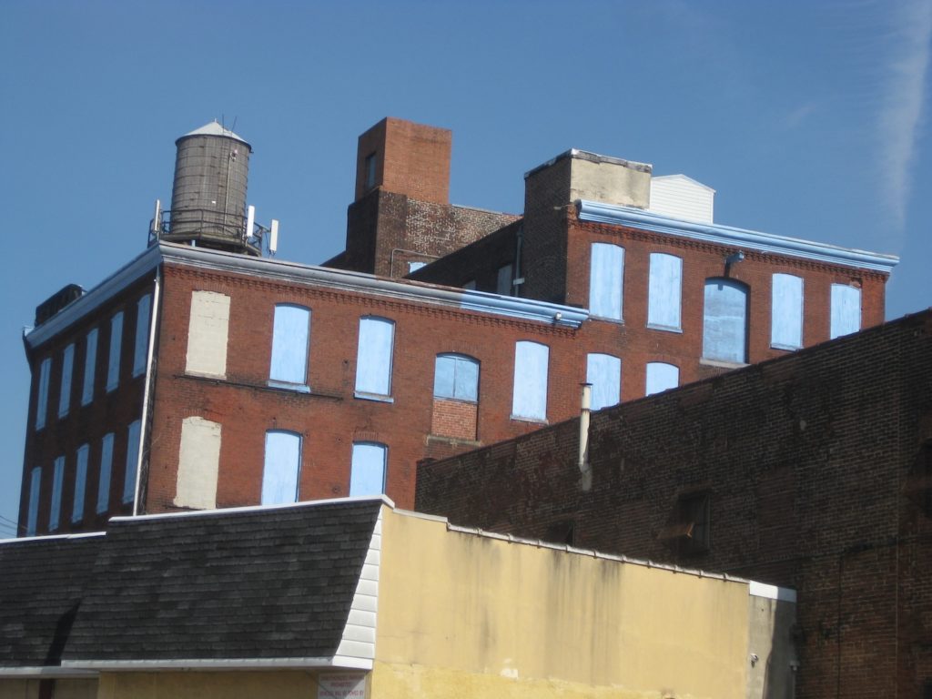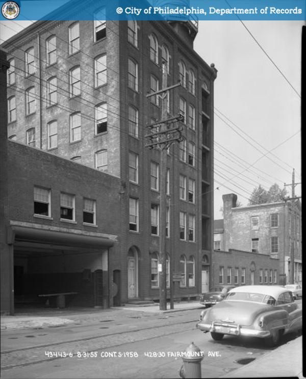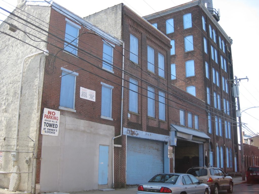 Two winters ago, we wondered about 420-42 Fairmount Ave., a large and unsightly warehouse that was home to a company called Trans-Atlantic. Passing by the building, you may think it’s vacant, especially considering all its windows are boarded up with blue-painted plywood. Despite the fact that the property is very much in use, it still screams adaptive reuse, especially considering the widespread development nearby. Now, it appears those hoots have been heard as developers have presented early plans to convert the warehouse into 48 apartments, demolish the smaller adjacent buildings, and parlay that with the construction of 25 single-family homes.