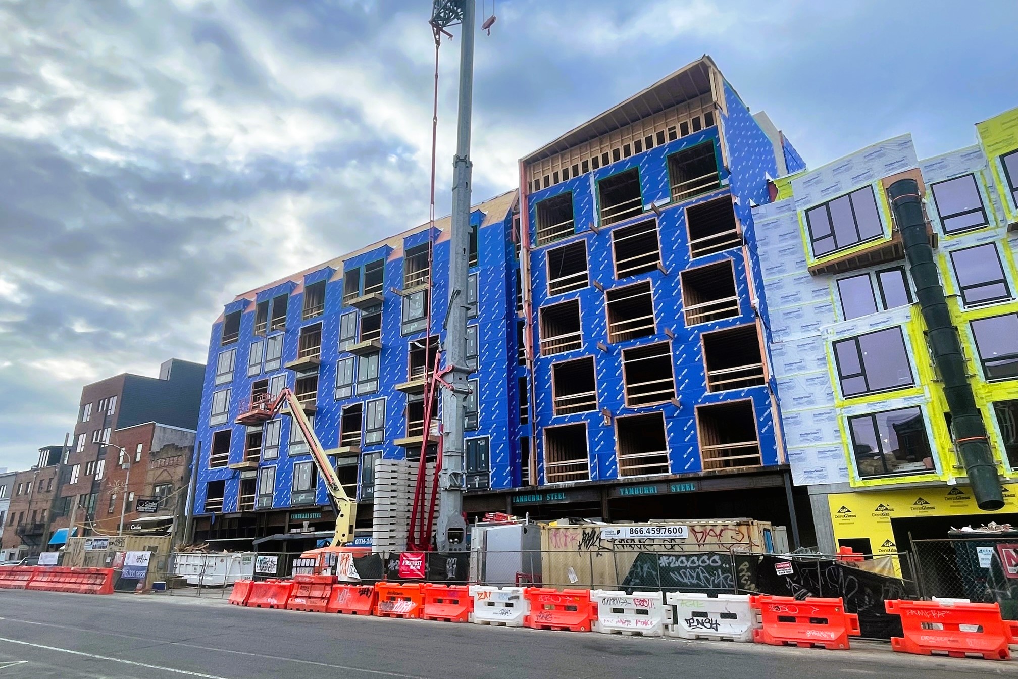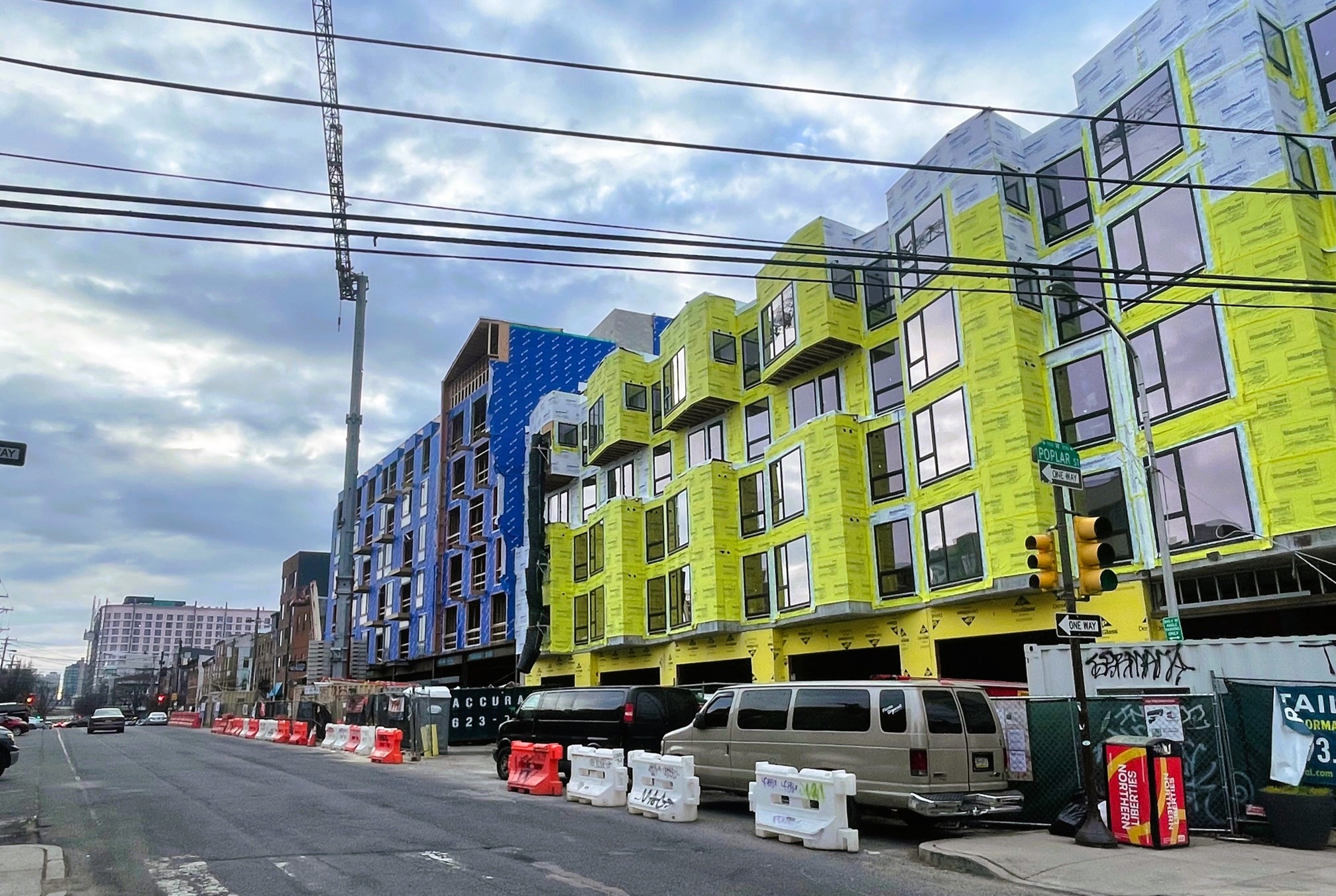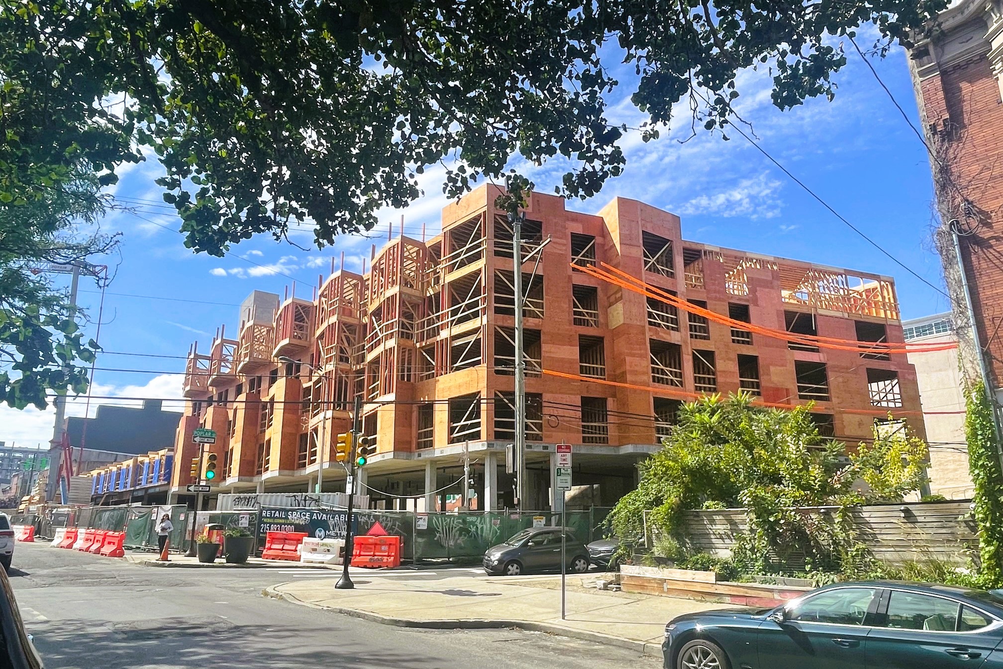 It is pretty amazing how different things can feel over three little months. Looking back to September, the Eagles were 3-0 and flying high, the Phillies had just clinched a Wild Card birth, and James Harden was still our disgruntled point guard. Northern Liberties was different then as well, when we visited a couple of projects taking place just south of 2nd & Poplar. But as the leaves/playoff outlooks have fallen, facades have risen, with the streetscape now looking much more complete than even 90 or so days ago.