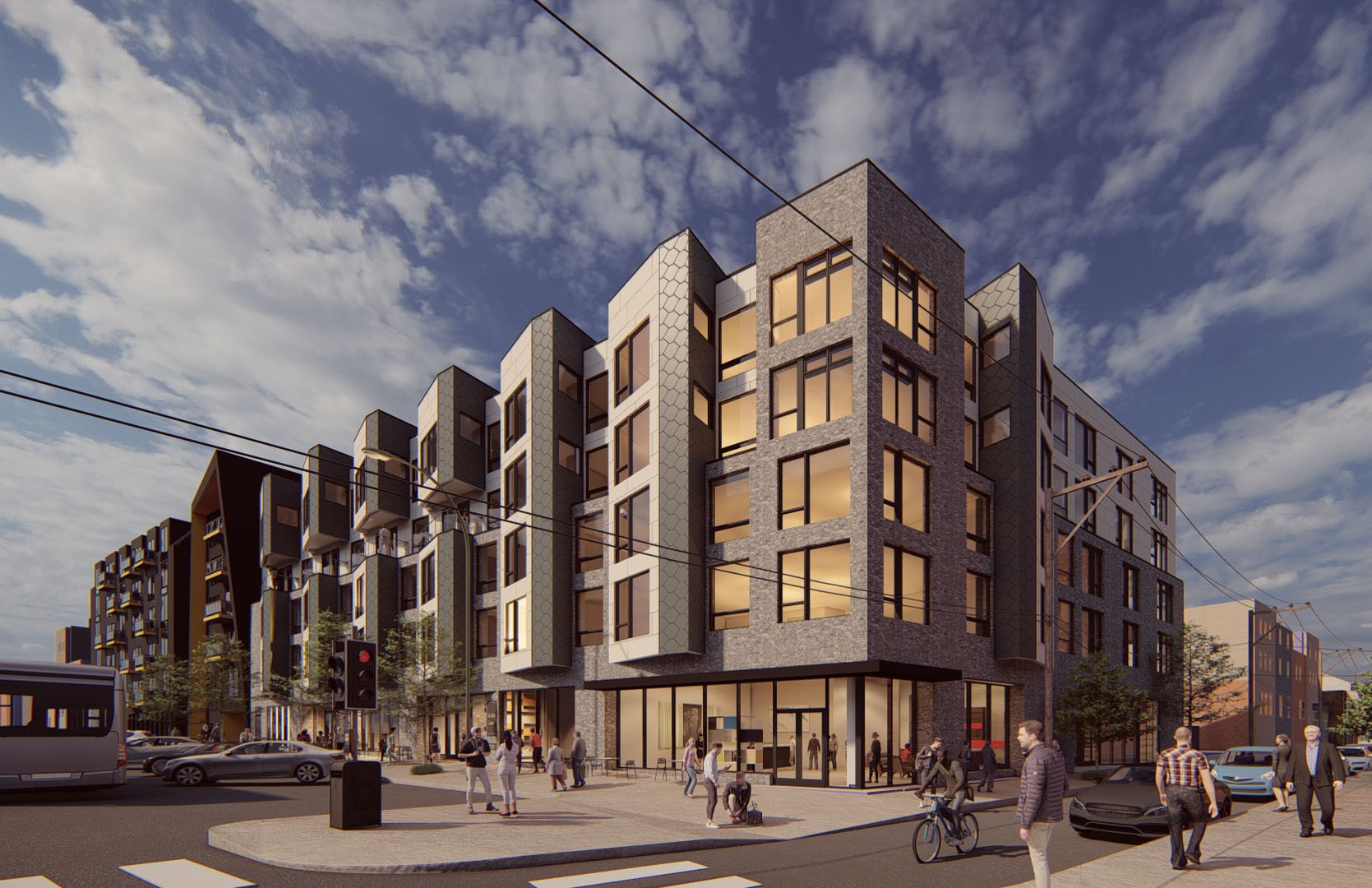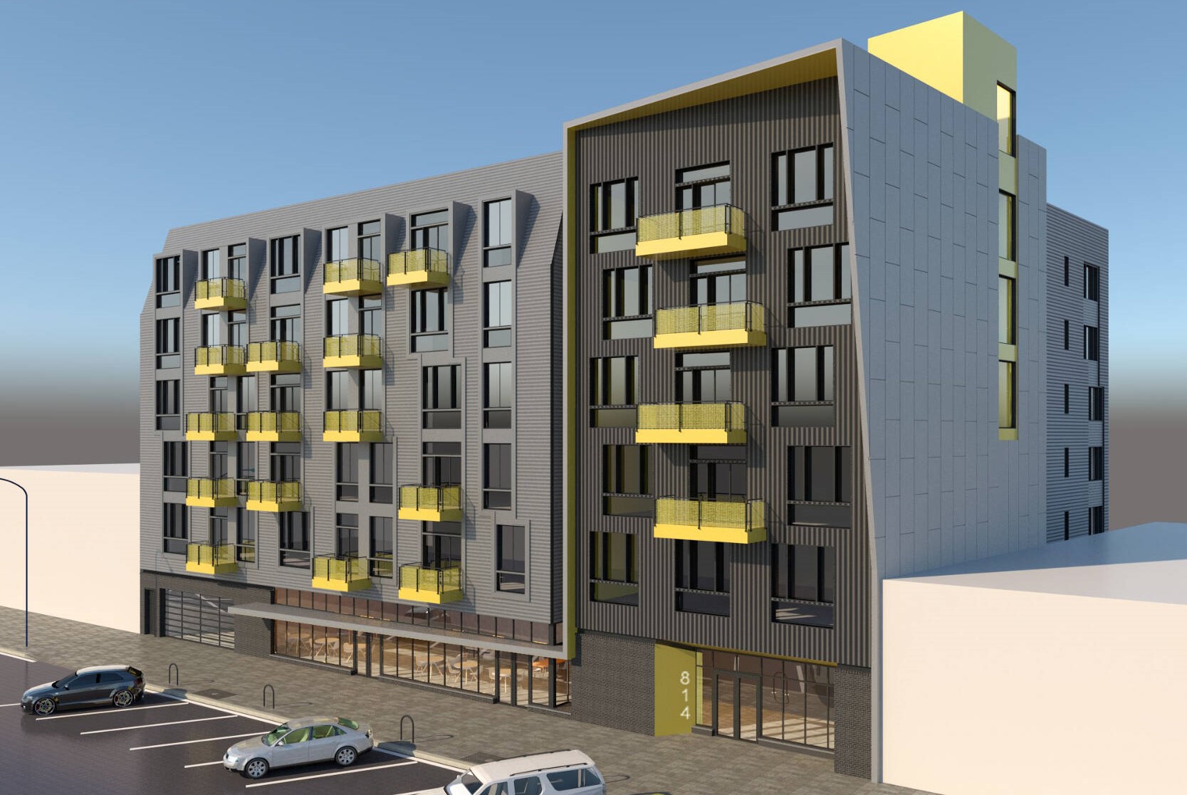 Just next door, 814-26 N. 2nd St. is now even taller than its neighbor after barely being above ground at our last visit. This mystery project is finally rounding into form, with a series of its own sharp angles across its six floors of mixed-use fun. Look for 78 units here over some more ground floor retail and some underground parking to sadly break up the commercial stretch. And thankfully, a recently updated listing for the commercial space has given us a first glimpse at refined renderings, too.