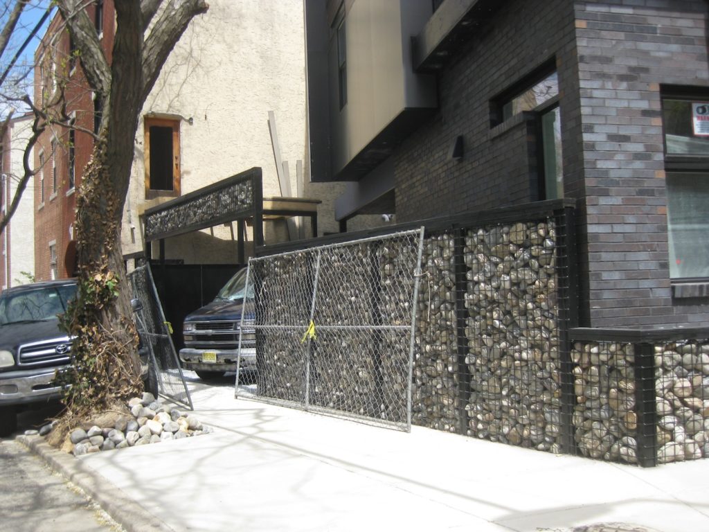 Last fall, we told you about plans for a new home at 427 Poplar St., which had been an overgrown lot for several years. At that time, formwork had just appeared and foundations were on the way. When we passed by last week, we realized that the home is finished. Architecturally, it seems to fit in pretty well with other new construction in the neighborhood. The fence that's been built, however, is something new.