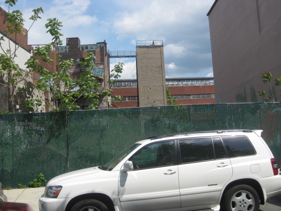 Vacant lot next door, brewery in the distance