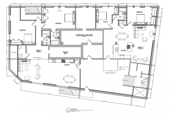 The project calls for the first-floor of the structure to remain as commercial-use, with the second-floor of the building to be renovated. Still at issue is how the design of the potential two basement apartment units will be managed. Aside from the basement (which features a vault from the building’s past) units, plans call for one first-floor unit and seven second-floor loft units ranging from 850 to 1200 square feet, all two bedrooms.