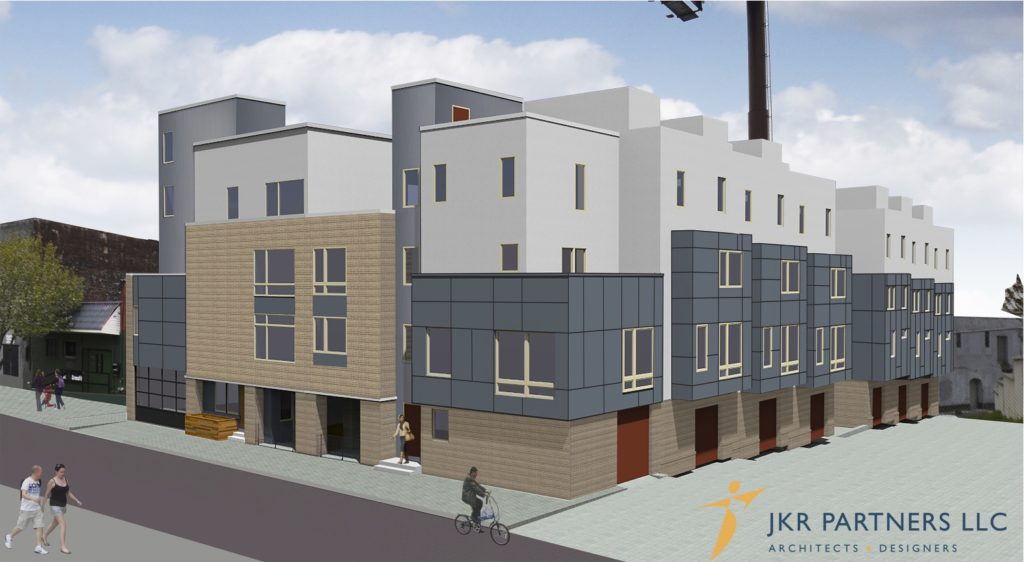 According to architects JKR Partners, the seven homes are coming from the same developers as the row of eight next door. The two western homes will be connected (outside not inside), and the other homes will have a U-formation with their rear yards facing each other. All of the homes will have parking included.