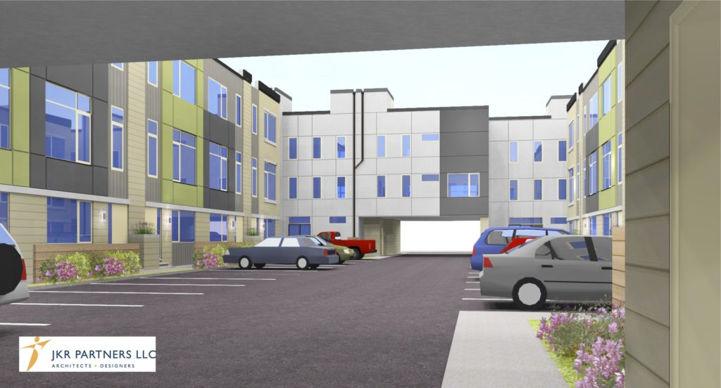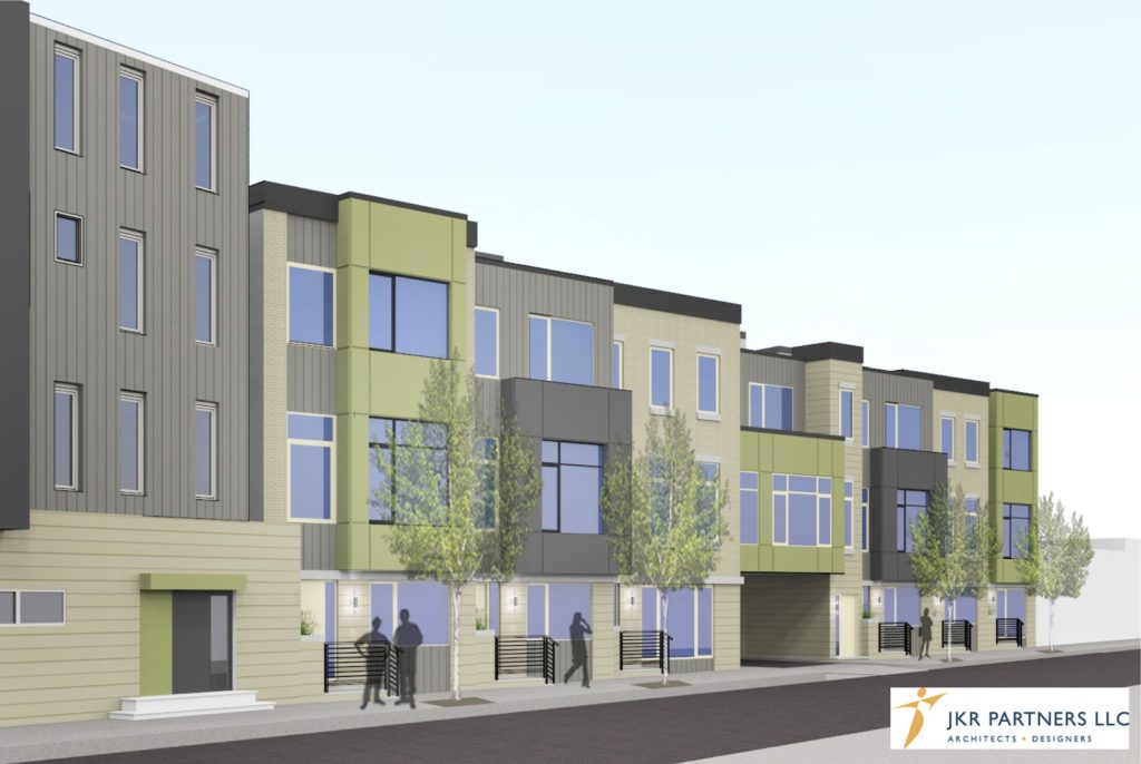 The plan for the site would include seven units fronting 3rd Street, seven units fronting Orianna Street, and ten units on either side of an interior courtyard/parking lot. The adaptible commerical spaces were proposed for one of the units on 3rd and one of the units on Orianna. JKR Partners did the architecture work.