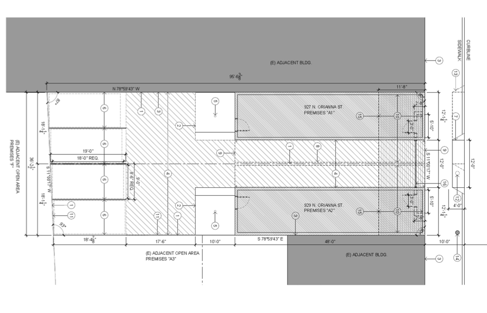 The developers hope to demolish the existing structures, and replace them with a duplex building with parking in the rear, using access through a front garage. As was the case with the previous project, Fishtank PHL did the design work.