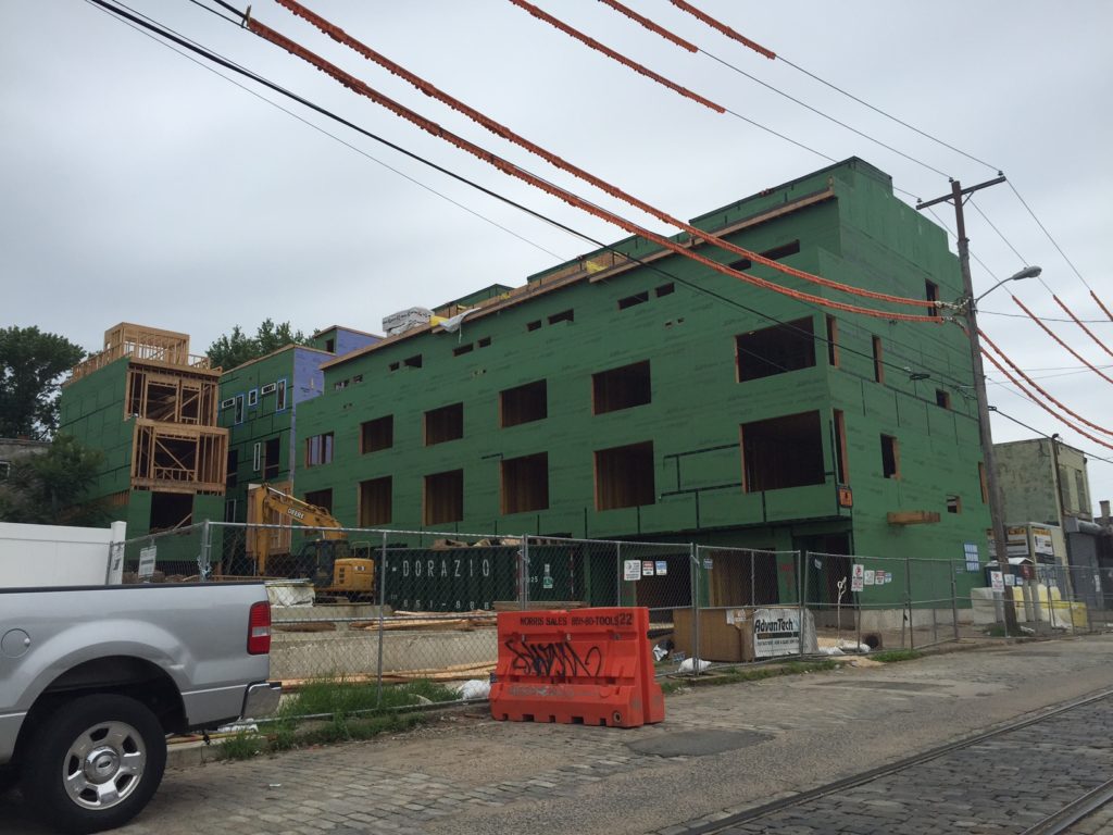 First, we told you last spring about plans for four new homes on the northwest corner of Front & Fairmount. This site had been a community garden for quite some time, but now it's home to a row of unusually shaped homes. At least one of the homes, the place on the corner, has sold. Two more of them are now listed at $550K which actually seems like a pretty low price for new construction in Northern Liberties.