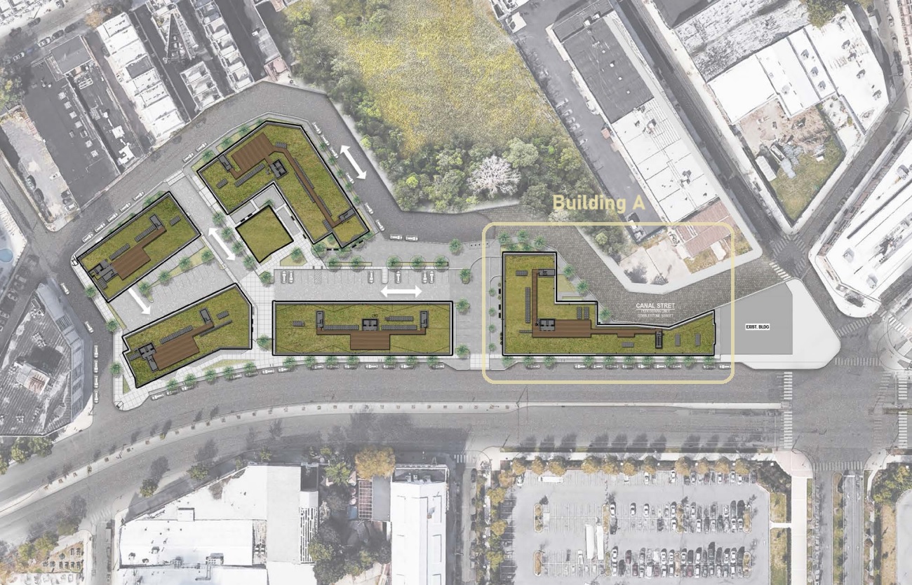 A rewind: A six-building complex named Five on Canal has been under construction for quite some time, with previous plans to bring 462 apartment units and over 20K sqft of commercial space to this former warehouse site. But developers GY Properties are looking to go even bigger, proposing an additional 42 units in Building A to bring the total unit count to 504 units across the complex, along with 140 car parking spaces and 196 bicycles spaces. Additionally, the design from HDO Architecture has also been shifted slightly, with four short-term units proposed along Canal St. at the very edge of the property, with a slightly reduced commercial footprint immediately to the south. As you can see, this height addition would mimic the other residential buildings in this project.
