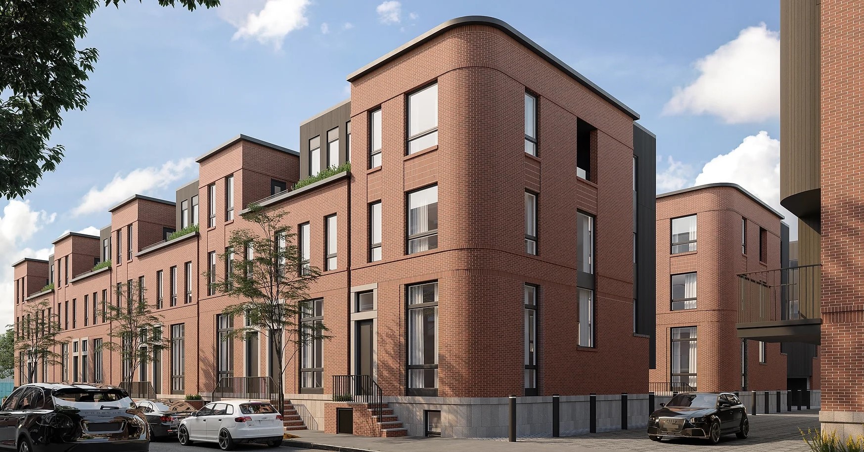 What you see is the start of a 34-home project called Wendle Place. This phased project is bringing a series of three-bed, five-bath homes, each with a two-car garage. Drive aisles will separate the homes, creating four distinct groups, one of which is complete, one of which is almost done, and two more that are seeing foundation work now. Catalyst City Development is leading the charge here, with Gnome Architects bringing their classic-contemporary approach to the property.