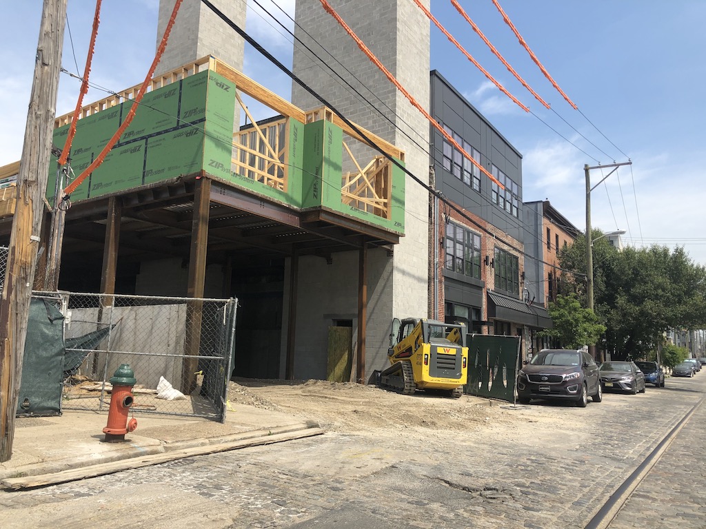 We were in the area recently (dropping off a mail-in ballot, if you must know), and we were pleased to see some nice progress on a new apartment building just north of Front & Spring Garden. A little more than three years ago, we told you that developers had purchased the little building at 614 N. Front St. and were planning to tear it down in favor of an apartment building. It took a little longer than we would have expected, but the project is now moving along well. Along the way, the six-story design changed from the original plan, and it will now include 25 apartments, down from 27, and 9 parking spots, down from 17. It will also contain a small commercial space on Front Street. For now though, it’s pretty much all stair and elevator towers.