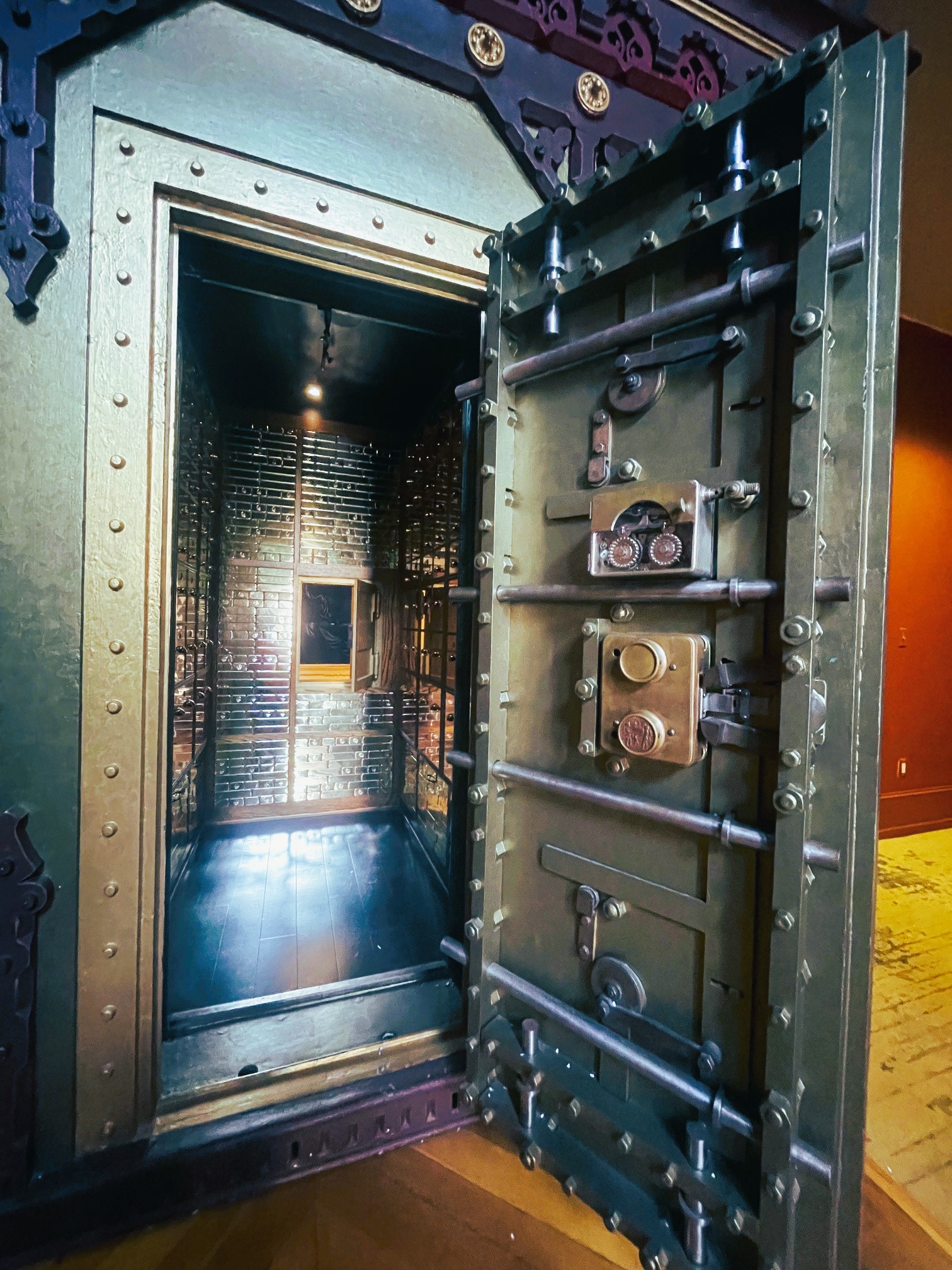 The first sign was one for an upcoming event that reminded us that this building has been used in the past as part of the Fringe Arts festivities. Last September, artist Meg Saligman organized Make Bank, where attendees were “invited to join a band of currency-crazed visual and performing artists as they occupy The Manufacturers’ National Bank.” Last used as an office space which closed in 1985, the interiors of the building were completely reimagined, taking advantage of the surprisingly tall spaces. As you can see from an Instagram post from Saligman, things on the inside looked like a brilliant wonderland of color compared to the traditional masonry exterior.