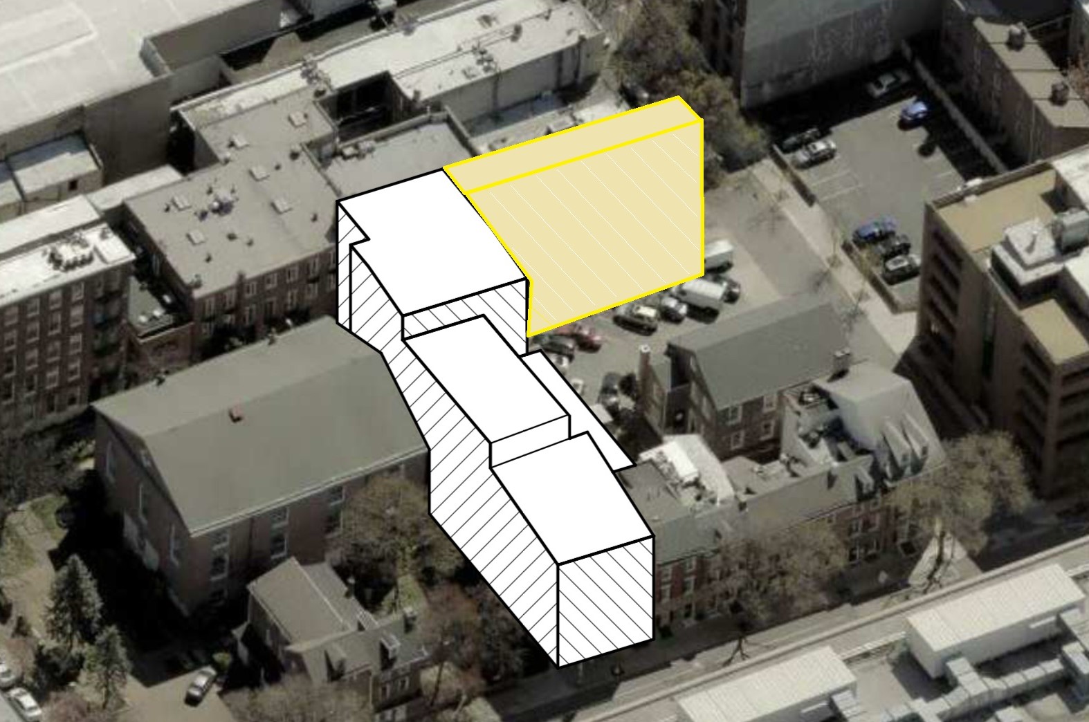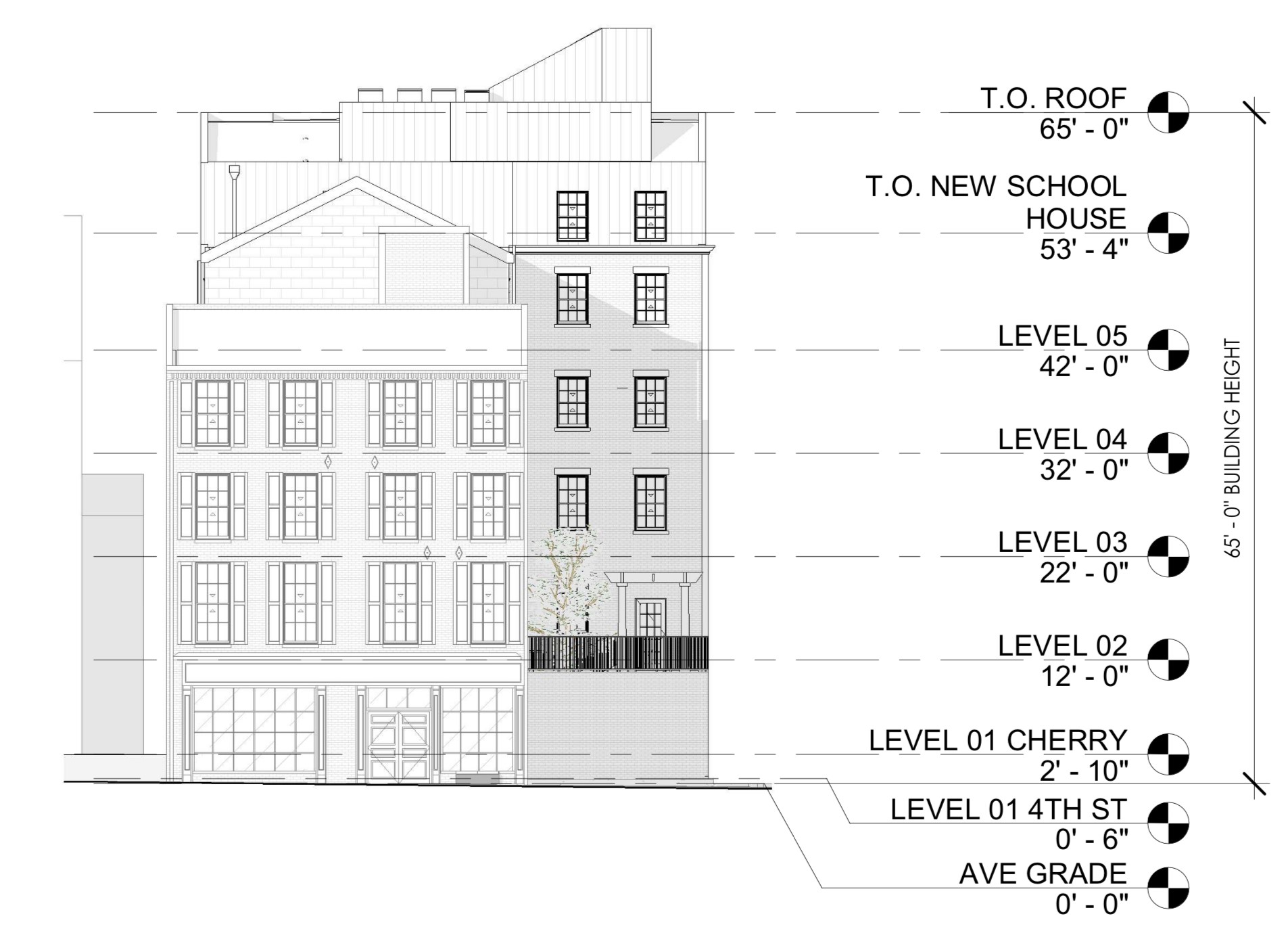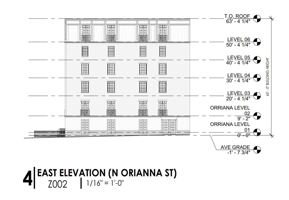 We were aware of plans for a 36-unit, multifamily building from DesignBlendz, and some further digging in our trusty Atlas shed some light on the back side of the site. The narrow strip of land at 319 Cherry St. adjacent to this property along Orianna St. is also part of the plans, with a six-story addition for this portion of the site containing six units (to the other 30 in the original structure and addition).