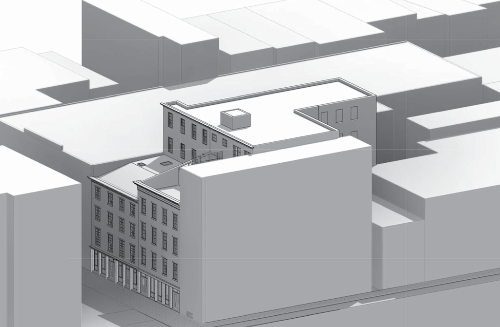This Tetris-like structure is going to have a major impact on the area, with the tall, narrow building rising high against the smaller street to the east, which is barely wide enough for a car. Excitingly, we finally have a rendering of what we can expect here, with red brick and a traditional approach working to blend in with the existing architecture.