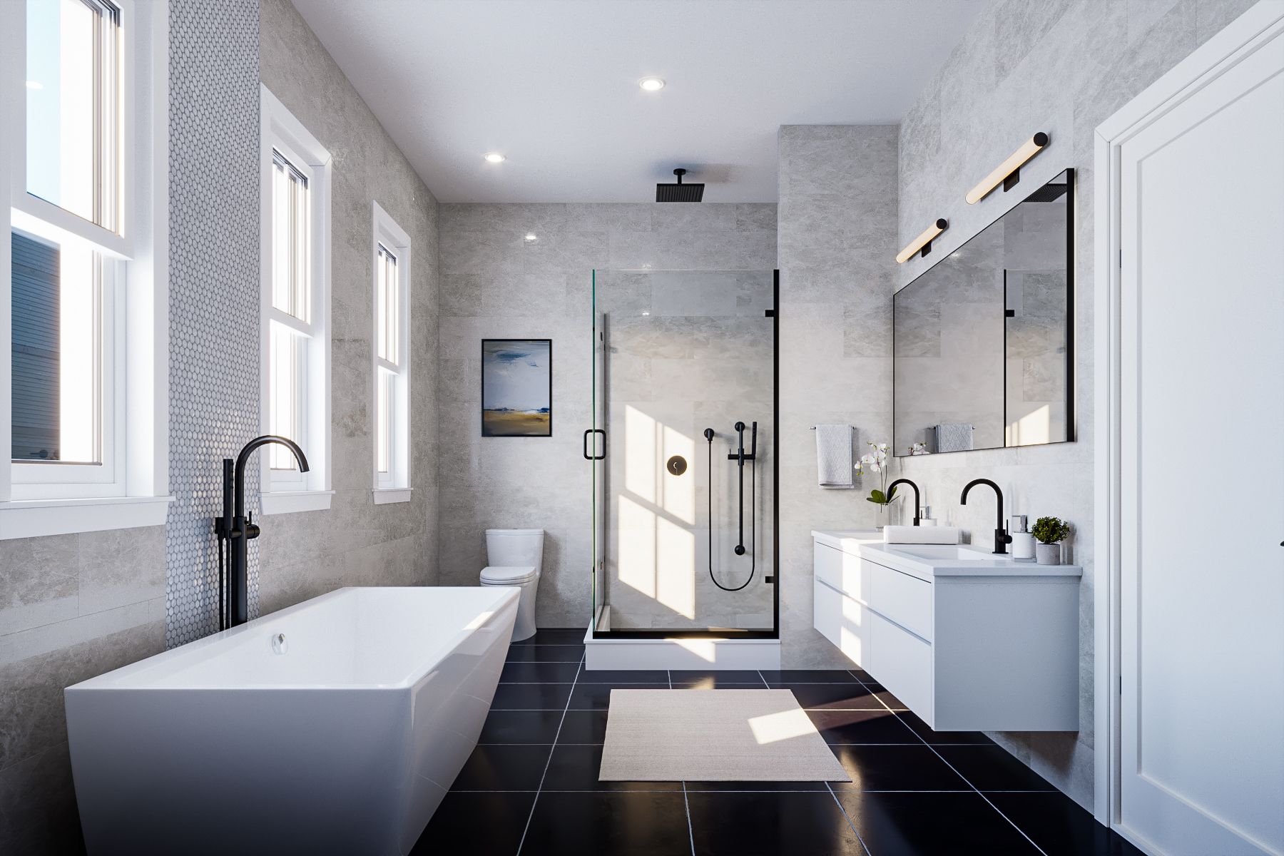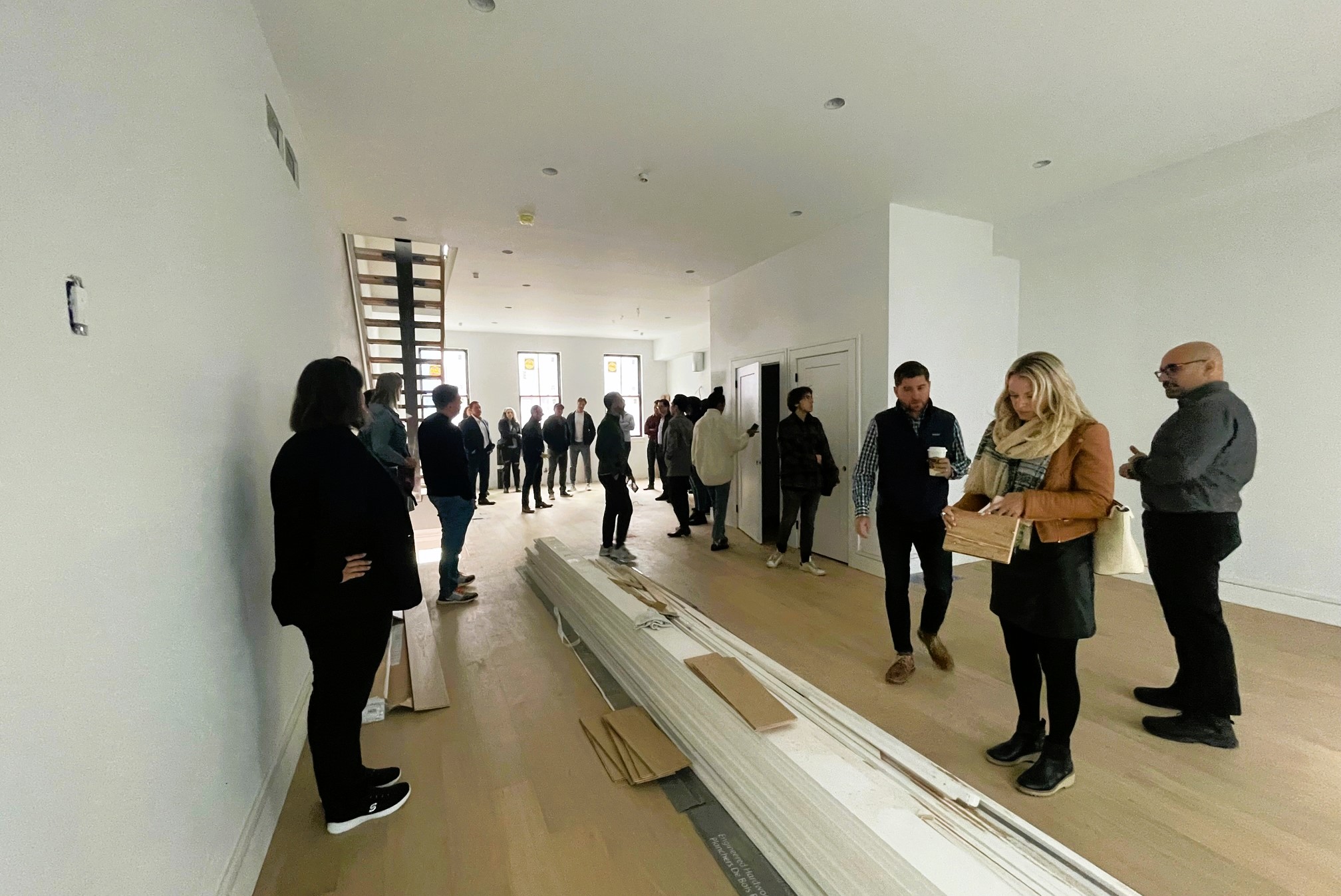 We had the pleasure of touring one of these under-construction units the other day. All the units will offer three-bedrooms, six total bathrooms, a full basement, two-car parking, and some pretty sweet roof deck views. Let’s tag along with the team as we make our way in.
