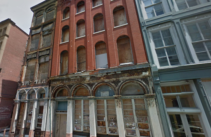 223-27 Chestnut St. has a long and varied history, detailed by GrojLart a couple years ago on Hidden City. It was built in the mid-1800s and served for a time as the Consulate for the German Empire and the Meyer & Dickinson Import Company. Around the turn of the century, the building housed the Security Bank Note Company and a few decades later it bacame the United States Public Health Service Hospital. In the 1970s, it turned into the Museum for the United American Indians of the Delaware Valley. A decade ago, the museum closed its doors and the building has been vacant since. In 2008, plans came and went to convert the historic building into a boozy day spa. That developer went bust, and it took several years for PIDC to pry the property out of their hands.