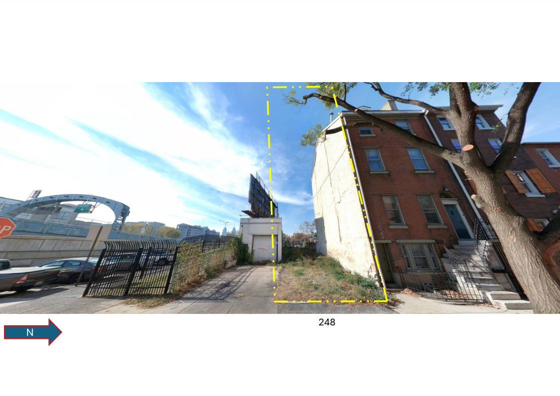From what we can tell, the demolition from the construction of the bridge resulted in the demolition of the building at 248 N Lawrence St., and the property has remained vacant ever since. Finally, it appears that this property is getting filled in, with plans for a five-story condo building. A submission to the Philadelphia Historical Commission provides some additional context.