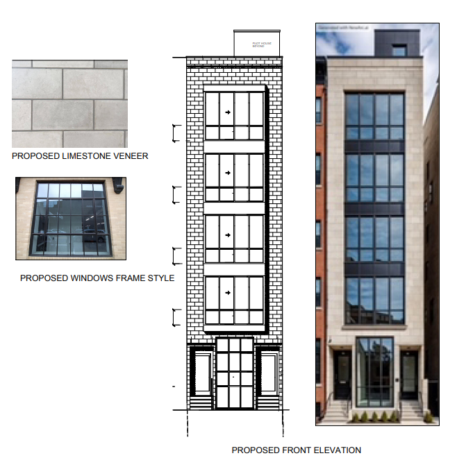 The original plans for the condo building included a limestone masonry for much of the front facade to give the building a distinctive signature, instead of the more typical brick facade with punch windows. However staff and committee members encouraged the developer to utilize to brick to match some of the nearby buildings, the developer seemed open to the idea, even if he felt it unnecessary.