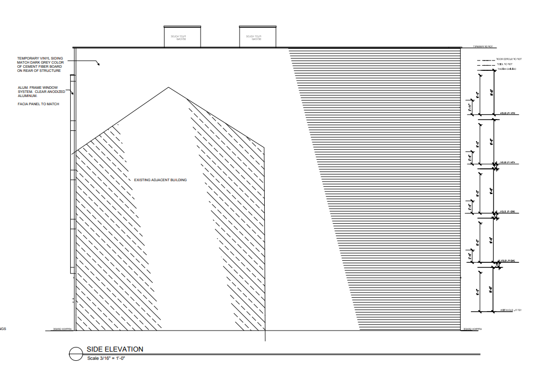 Architectural Committee members also objected to the plans to use temporary vinyl siding on the south facade, noting this wall will be relatively visible from the Ben Franklin Bridge. The architect acknowledged the issue and noted they would love to include windows on this wall, but are prevented from doing so by the code, due to the lack of a setback. While entertaining the idea of using an alternative material, they pointed out much of the wall is currently obscured by the billboard, and it seems quite likely the existing neighboring garage will be replaced with a more substantial structure at some point.