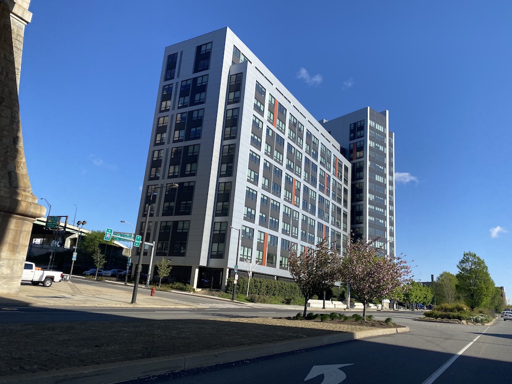 Perhaps the construction of One Water Street a few years back was the true indication that 300 N. Columbus Blvd. could finally get developed. This project included a couple hundred rental apartments in a building with easy waterfront access and tremendous Ben Franklin Bridge views, and essentially served as proof of concept for a potential project next door. And indeed, the proposal from the Durst Organization takes the One Water Street plan and kicks it up a notch or three.
