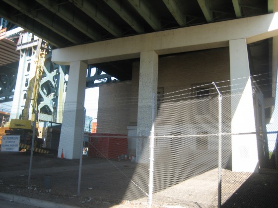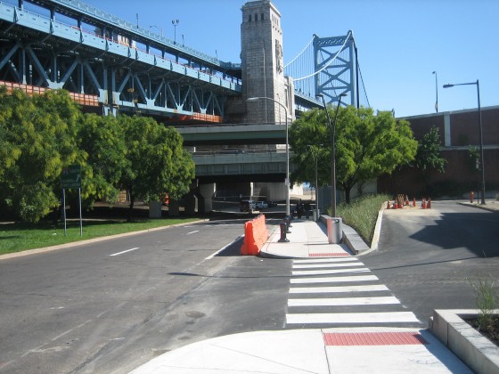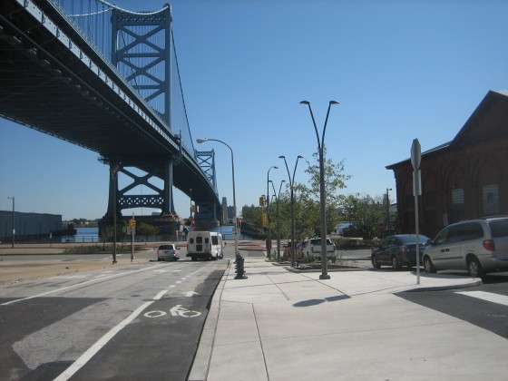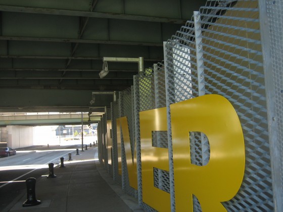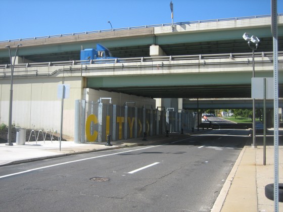 In honor of tonight’s grand opening ceremony for the Race Street Connector, we figured we’d head over and see what progress has been made at making the hundred yard walk under I-95 feel less like a hundred yard walk under I-95. For those who don’t know what we’re talking about, the Race Street Connector is the first step in a long-term project to improve access to the Delaware river, and utilizes landscaping, greenery, improved signage, widened sidewalks, and lights projected on a metal screen to improve the walkability and safety of the stretch of Race St. between Front St. and Delaware Ave. The purpose of this connection is to make it easier for folks to get to our pricey but pretty new public space, the Race Street Pier.
