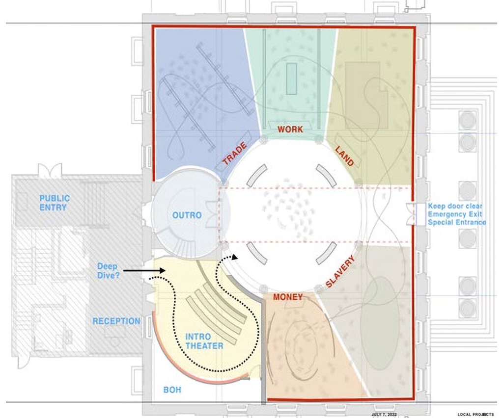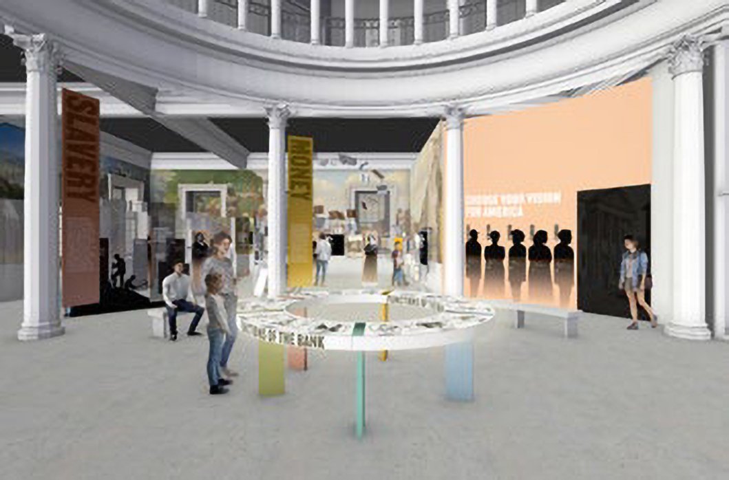 The new exterior does a good job of blending in with the original building, nearly disappearing visually, as is entirely appropriate for this sort of addition. Excitingly, the interiors could have an updated look, too. Independence Historical Trust is working to raise $6 million or so to create a museum, along with all the bells and whistles that come with it. This part of the process is still in the conceptual phases, with hopes to have things up and running in time for the rapidly approaching Semiquincentennial in Summer 2026. Let’s peer at the fuzzy plans to get an idea of what might await.