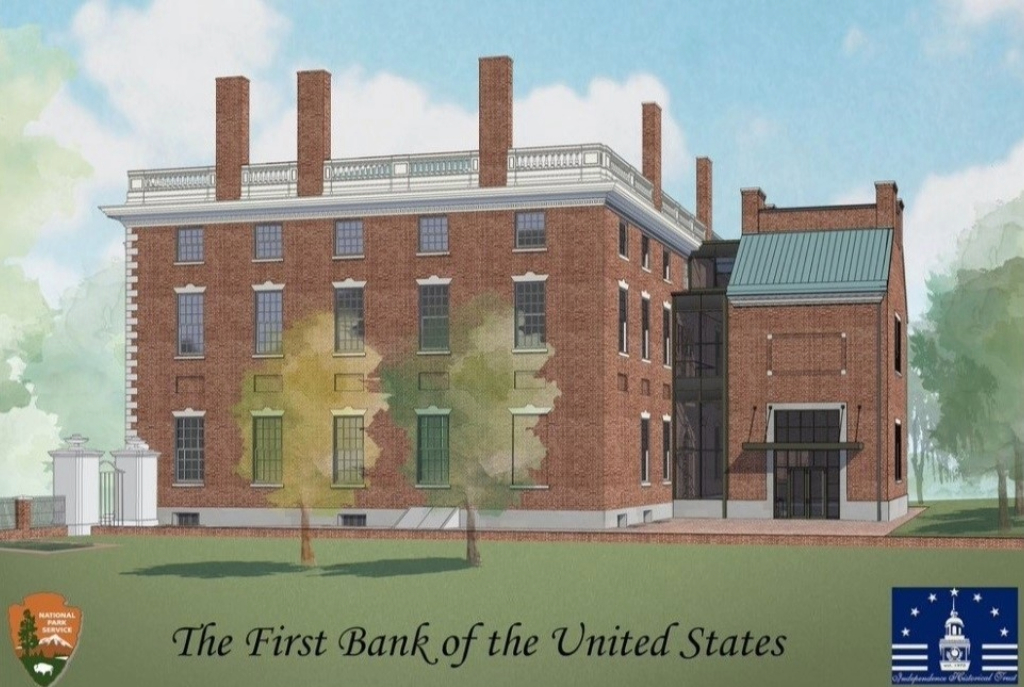 What’s ahead is exciting indeed, as the future includes the full restoration and rehabilitation of both the exterior and interior of the building. As building codes and accessibility concerns have changed slightly since the 1790s, an addition will be added with new bathrooms, stairways, and elevators, along with less exciting (though also important) HVAC improvements. Let’s check out the renderings, with a design guided by some feedback from the nearby Carpenters’ Hall. Incidentally, the bank operated out of Carpenter’s Hall from 1791 until its permanent home was completed a few years later.