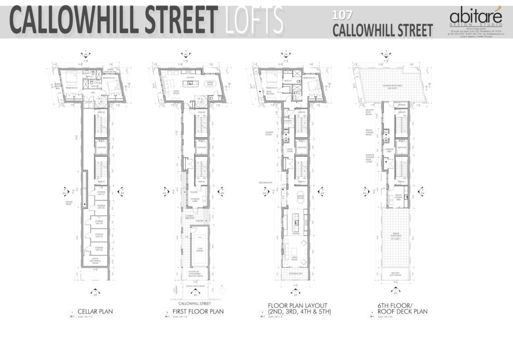The plan we detailed previously involved four apartments and an upstairs commercial space. One apartment was going to be on the first floor, two were planned for the second floor, and the fourth unit over the third and fourth floors. Abitare Studios, the company that designed the project, was also planing to move their offices from Old City to a commercial space that was to be on the third and fourth floors in the back of the building. The new version, approved recently by the ZBA, eliminates the commercial use and adds story and an apartment unit. Check out the renderings: